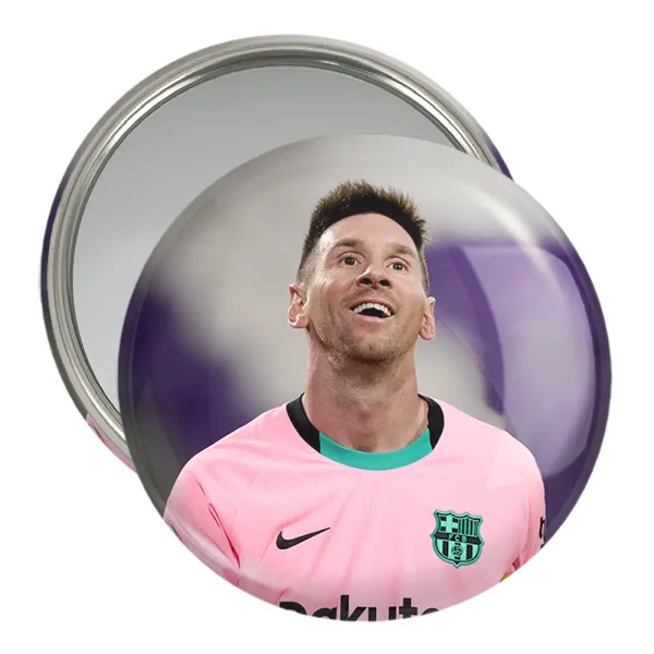 آینه های جیبی لیونل مسی خندالو دایره ای به قطر 7.5 سانتی متر می باشد که نه خیلی بزرگ و غیر قابل استفاده در کیف آرایشی ست و نه خیلی کوچک که تصویر خاصی در آن مشاهده نشود. سایزی استاندارد و کارآمد دارد و مناسب قرار گیری در کیف لوازم آرایش و کیف های کوچک دستی نیز هست.