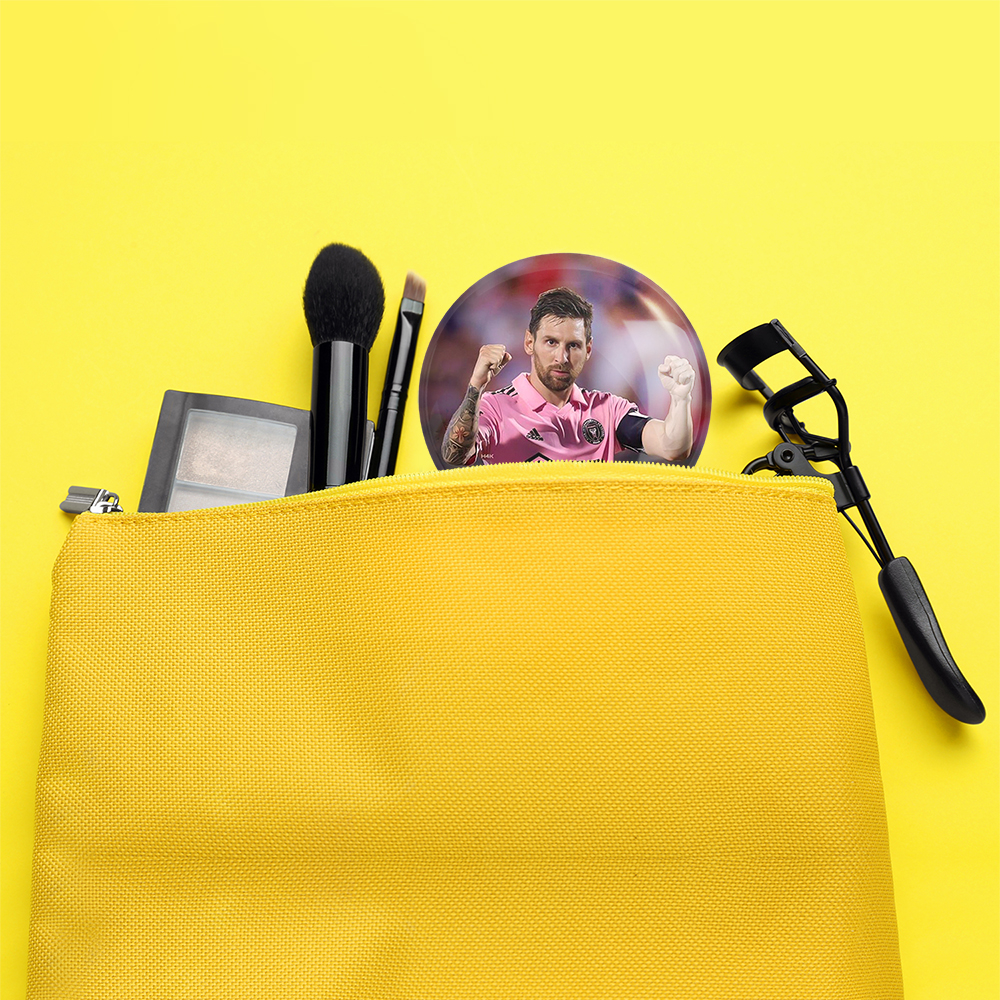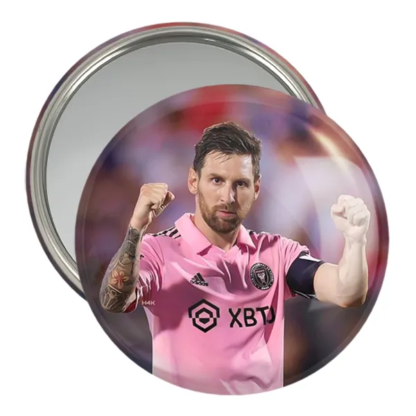 آینه های جیبی لیونل مسی خندالو دایره ای به قطر 7.5 سانتی متر می باشد که نه خیلی بزرگ و غیر قابل استفاده در کیف آرایشی ست و نه خیلی کوچک که تصویر خاصی در آن مشاهده نشود. سایزی استاندارد و کارآمد دارد و مناسب قرار گیری در کیف لوازم آرایش و کیف های کوچک دستی نیز هست.