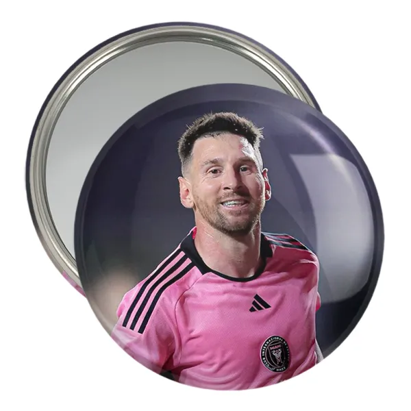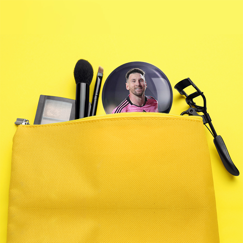 آینه های جیبی لیونل مسی خندالو دایره ای به قطر 7.5 سانتی متر می باشد که نه خیلی بزرگ و غیر قابل استفاده در کیف آرایشی ست و نه خیلی کوچک که تصویر خاصی در آن مشاهده نشود. سایزی استاندارد و کارآمد دارد و مناسب قرار گیری در کیف لوازم آرایش و کیف های کوچک دستی نیز هست.