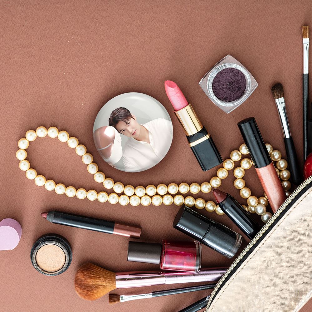 آینه های جیبی لی مین هو Lee min ho خندالو دایره ای به قطر 7.5 سانتی متر می باشد که نه خیلی بزرگ و غیر قابل استفاده در کیف آرایشی ست و نه خیلی کوچک که تصویر خاصی در آن مشاهده نشود. سایزی استاندارد و کارآمد دارد و مناسب قرار گیری در کیف لوازم آرایش و کیف های کوچک دستی نیز هست.