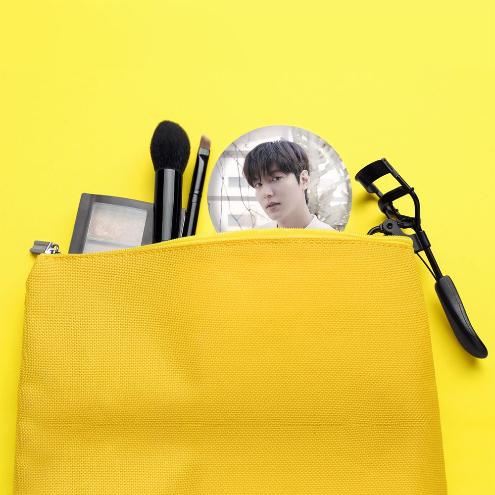 آینه های جیبی لی مین هو Lee min ho خندالو دایره ای به قطر 7.5 سانتی متر می باشد که نه خیلی بزرگ و غیر قابل استفاده در کیف آرایشی ست و نه خیلی کوچک که تصویر خاصی در آن مشاهده نشود. سایزی استاندارد و کارآمد دارد و مناسب قرار گیری در کیف لوازم آرایش و کیف های کوچک دستی نیز هست.