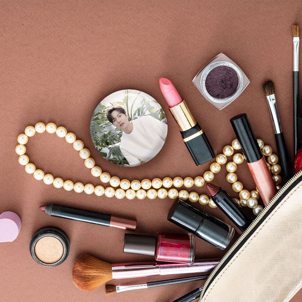 آینه های جیبی لی مین هو Lee min ho خندالو دایره ای به قطر 7.5 سانتی متر می باشد که نه خیلی بزرگ و غیر قابل استفاده در کیف آرایشی ست و نه خیلی کوچک که تصویر خاصی در آن مشاهده نشود. سایزی استاندارد و کارآمد دارد و مناسب قرار گیری در کیف لوازم آرایش و کیف های کوچک دستی نیز هست.
