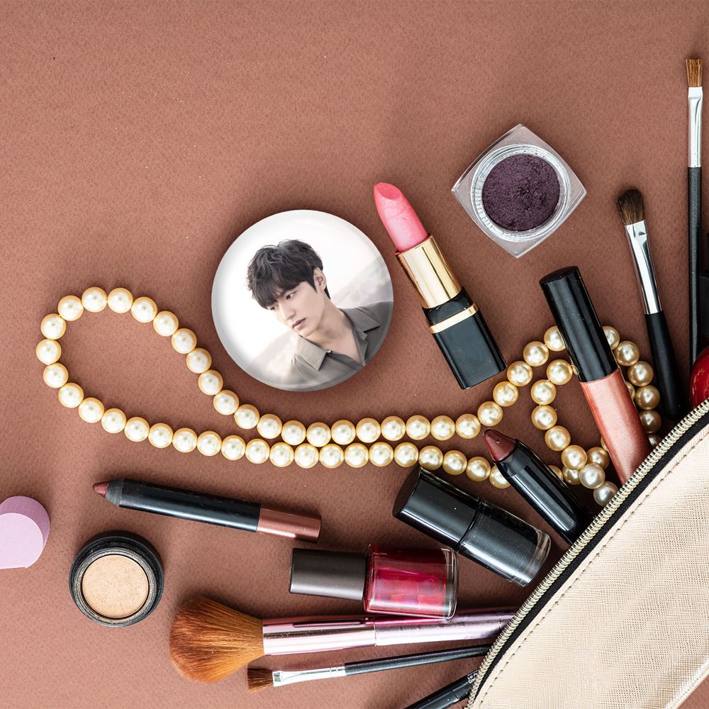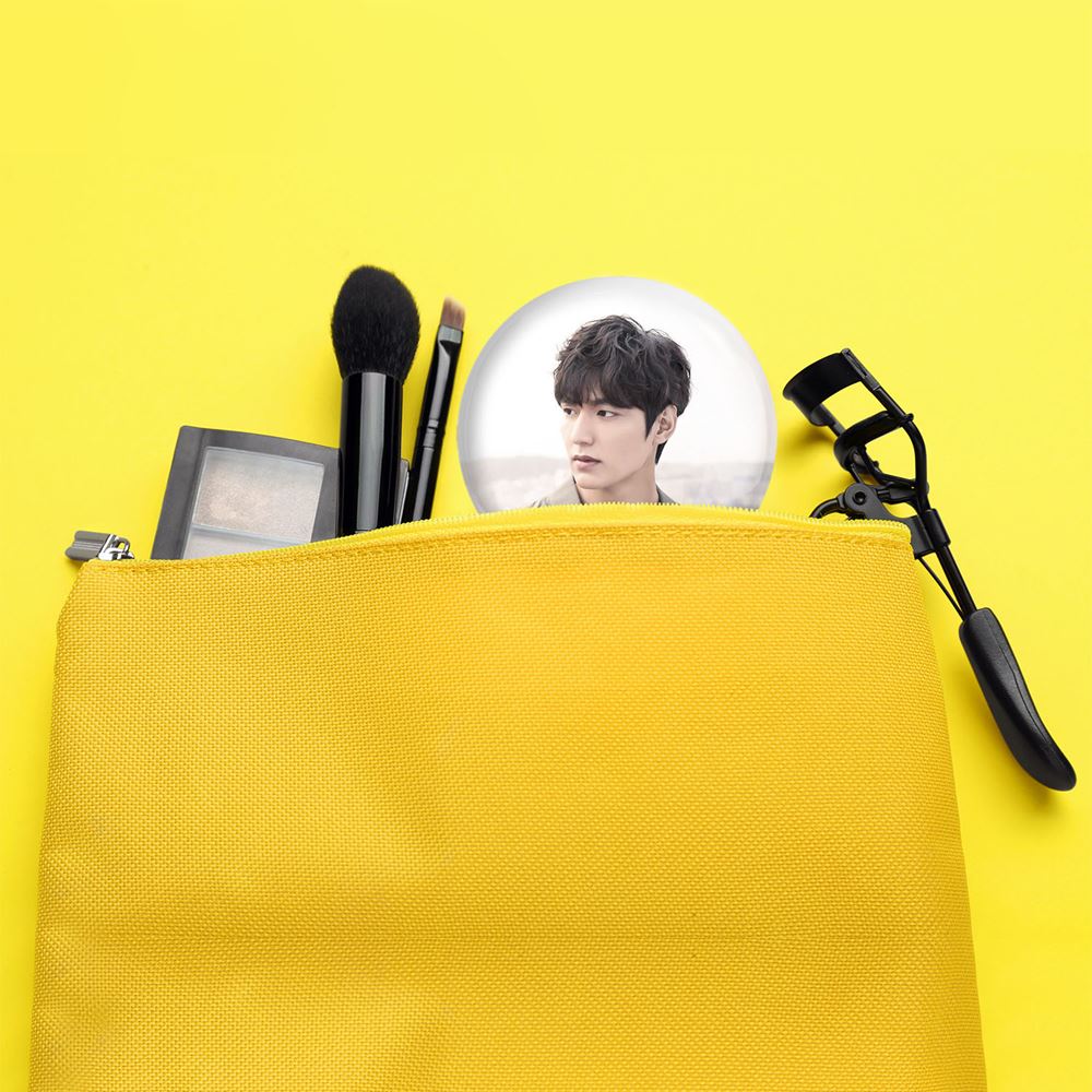 آینه های جیبی لی مین هو Lee min ho خندالو دایره ای به قطر 7.5 سانتی متر می باشد که نه خیلی بزرگ و غیر قابل استفاده در کیف آرایشی ست و نه خیلی کوچک که تصویر خاصی در آن مشاهده نشود. سایزی استاندارد و کارآمد دارد و مناسب قرار گیری در کیف لوازم آرایش و کیف های کوچک دستی نیز هست.