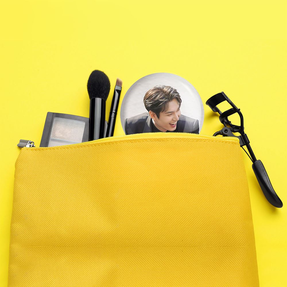 آینه های جیبی لی مین هو Lee min ho خندالو دایره ای به قطر 7.5 سانتی متر می باشد که نه خیلی بزرگ و غیر قابل استفاده در کیف آرایشی ست و نه خیلی کوچک که تصویر خاصی در آن مشاهده نشود. سایزی استاندارد و کارآمد دارد و مناسب قرار گیری در کیف لوازم آرایش و کیف های کوچک دستی نیز هست.