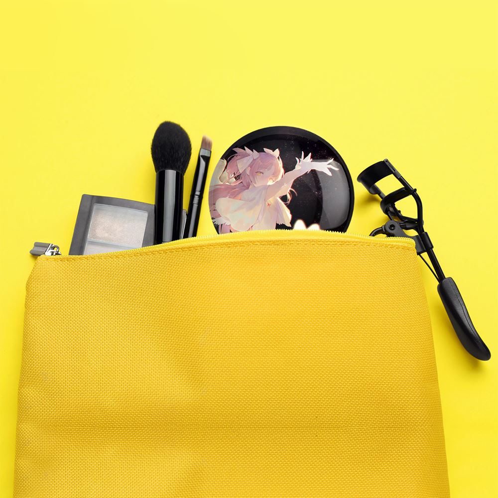 آینه های جیبی مادوکا کانام انیمه مادوکا مجیکا Madoka Magica خندالو دایره ای به قطر 7.5 سانتی متر می باشد که نه خیلی بزرگ و غیر قابل استفاده در کیف آرایشی ست و نه خیلی کوچک که تصویر خاصی در آن مشاهده نشود. سایزی استاندارد و کارآمد دارد و مناسب قرار گیری در کیف لوازم آرایش و کیف های کوچک دستی نیز هست.