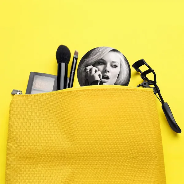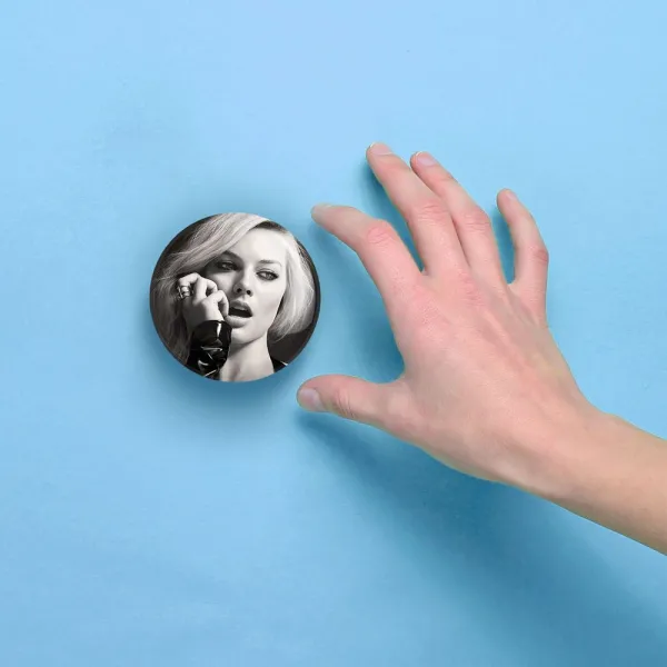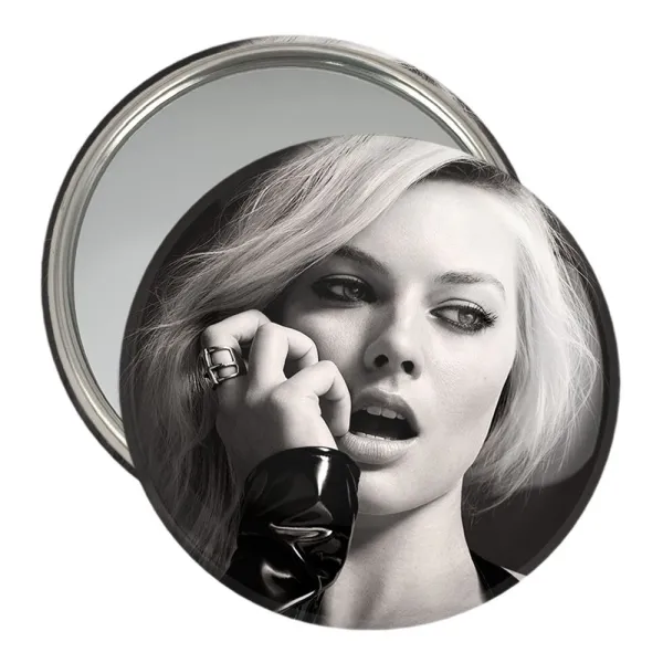 آینه های جیبی مارگو رابی Margot Robbie خندالو دایره ای به قطر 7.5 سانتی متر می باشد که نه خیلی بزرگ و غیر قابل استفاده در کیف آرایشی ست و نه خیلی کوچک که تصویر خاصی در آن مشاهده نشود. سایزی استاندارد و کارآمد دارد و مناسب قرار گیری در کیف لوازم آرایش و کیف های کوچک دستی نیز هست.