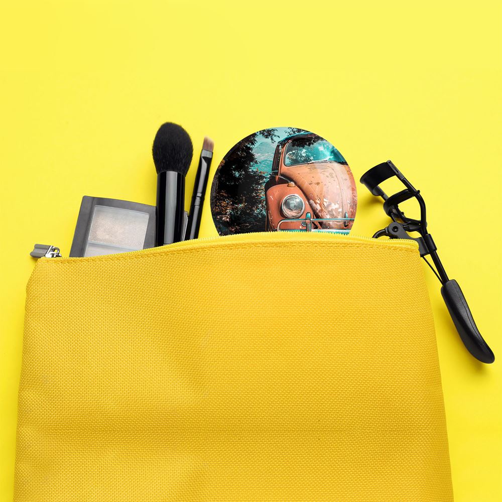 آینه های جیبی ماشین کلاسیک خندالو دایره ای به قطر 7.5 سانتی متر می باشد که نه خیلی بزرگ و غیر قابل استفاده در کیف آرایشی ست و نه خیلی کوچک که تصویر خاصی در آن مشاهده نشود. سایزی استاندارد و کارآمد دارد و مناسب قرار گیری در کیف لوازم آرایش و کیف های کوچک دستی نیز هست.