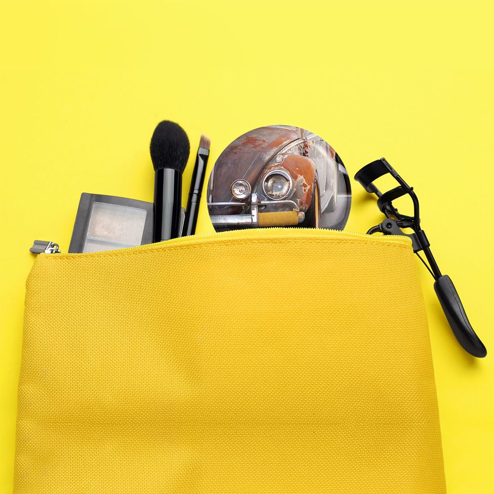 آینه های جیبی ماشین کلاسیک خندالو دایره ای به قطر 7.5 سانتی متر می باشد که نه خیلی بزرگ و غیر قابل استفاده در کیف آرایشی ست و نه خیلی کوچک که تصویر خاصی در آن مشاهده نشود. سایزی استاندارد و کارآمد دارد و مناسب قرار گیری در کیف لوازم آرایش و کیف های کوچک دستی نیز هست. بدنه ی آینه جیبی ماشین کلاسیک در قسمتی که آینه را در بر گرفته فلزی بوده و ظاهر براق و بسیار زیبایی دارد. چاپ طرح در پشت آینه بوسیله چاپگرهای دیجیتال شش رنگ با شفافیت و کیفیتی مثال زدنی انجام گرفته و با روکش لمینت حرارتی پوشیده شده که در مقابل آسیب و خط و خش مقاوم بوده و کیفیت بالایی دارد. آینه های جیبی ماشین کلاسیک خندالو با تنوع طرحی بسیار بالا، سلیقه هر نوع مخاطبی را تامین میکند.
