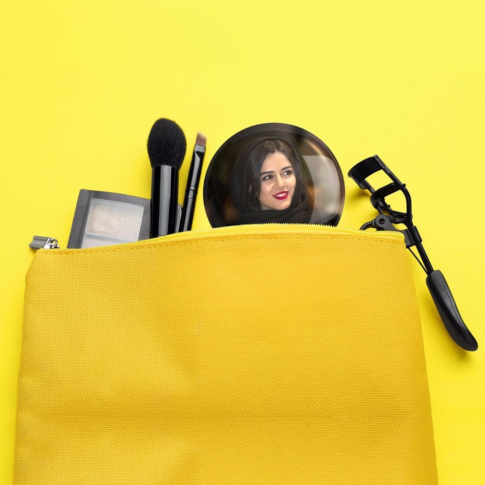 آینه های جیبی ماهور الوند خندالو دایره ای به قطر 7.5 سانتی متر می باشد که نه خیلی بزرگ و غیر قابل استفاده در کیف آرایشی ست و نه خیلی کوچک که تصویر خاصی در آن مشاهده نشود. سایزی استاندارد و کارآمد دارد و مناسب قرار گیری در کیف لوازم آرایش و کیف های کوچک دستی نیز هست.