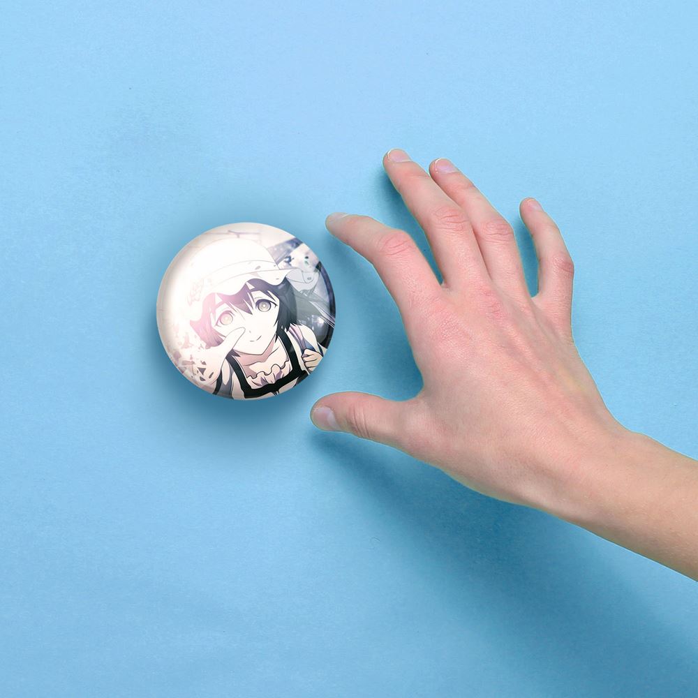 آینه های جیبی مایوری شینا انیمه اشتاینز گیت خندالو دایره ای به قطر 7.5 سانتی متر می باشد که نه خیلی بزرگ و غیر قابل استفاده در کیف آرایشی ست و نه خیلی کوچک که تصویر خاصی در آن مشاهده نشود. سایزی استاندارد و کارآمد دارد و مناسب قرار گیری در کیف لوازم آرایش و کیف های کوچک دستی نیز هست.