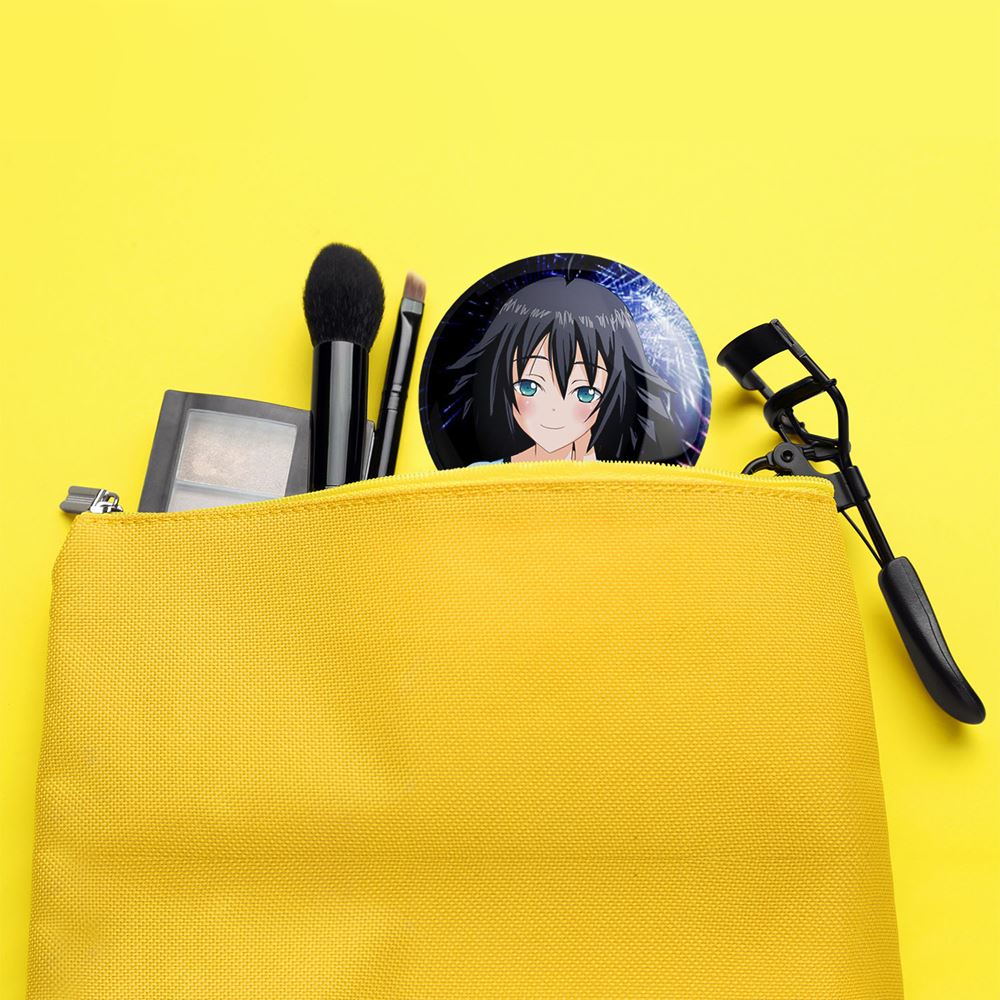 آینه های جیبی مایوری شینا انیمه اشتاینز گیت خندالو دایره ای به قطر 7.5 سانتی متر می باشد که نه خیلی بزرگ و غیر قابل استفاده در کیف آرایشی ست و نه خیلی کوچک که تصویر خاصی در آن مشاهده نشود. سایزی استاندارد و کارآمد دارد و مناسب قرار گیری در کیف لوازم آرایش و کیف های کوچک دستی نیز هست.