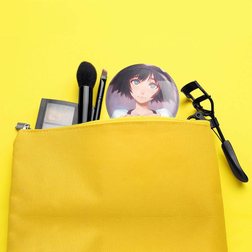 آینه های جیبی مایوری شینا انیمه اشتاینز گیت خندالو دایره ای به قطر 7.5 سانتی متر می باشد که نه خیلی بزرگ و غیر قابل استفاده در کیف آرایشی ست و نه خیلی کوچک که تصویر خاصی در آن مشاهده نشود. سایزی استاندارد و کارآمد دارد و مناسب قرار گیری در کیف لوازم آرایش و کیف های کوچک دستی نیز هست. بدنه ی آینه جیبی مایوری شینا انیمه اشتاینز گیت در قسمتی که آینه را در بر گرفته فلزی بوده و ظاهر براق و بسیار زیبایی دارد. چاپ طرح در پشت آینه بوسیله چاپگرهای دیجیتال شش رنگ با شفافیت و کیفیتی مثال زدنی انجام گرفته و با روکش لمینت حرارتی پوشیده شده که در مقابل آسیب و خط و خش مقاوم بوده و کیفیت بالایی دارد. آینه های جیبی مایوری شینا انیمه اشتاینز گیت خندالو با تنوع طرحی بسیار بالا، سلیقه هر نوع مخاطبی را تامین میکند.