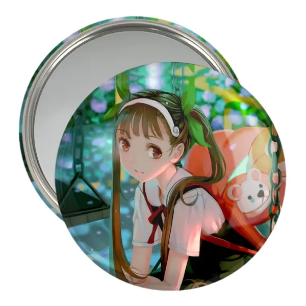آینه های جیبی مایویی انیمه مونوگاتاری خندالو دایره ای به قطر 7.5 سانتی متر می باشد که نه خیلی بزرگ و غیر قابل استفاده در کیف آرایشی ست و نه خیلی کوچک که تصویر خاصی در آن مشاهده نشود. سایزی استاندارد و کارآمد دارد و مناسب قرار گیری در کیف لوازم آرایش و کیف های کوچک دستی نیز هست. بدنه ی آینه جیبی مایویی انیمه مونوگاتاری در قسمتی که آینه را در بر گرفته فلزی بوده و ظاهر براق و بسیار زیبایی دارد. چاپ طرح در پشت آینه بوسیله چاپگرهای دیجیتال شش رنگ با شفافیت و کیفیتی مثال زدنی انجام گرفته و با روکش لمینت حرارتی پوشیده شده که در مقابل آسیب و خط و خش مقاوم بوده و کیفیت بالایی دارد. آینه های جیبی مایویی انیمه مونوگاتاری خندالو با تنوع طرحی بسیار بالا، سلیقه هر نوع مخاطبی را تامین میکند.