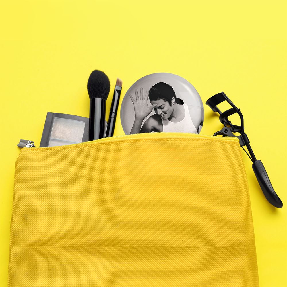 آینه های جیبی مایکل جکسون Michael Jackson خندالو دایره ای به قطر 7.5 سانتی متر می باشد که نه خیلی بزرگ و غیر قابل استفاده در کیف آرایشی ست و نه خیلی کوچک که تصویر خاصی در آن مشاهده نشود. سایزی استاندارد و کارآمد دارد و مناسب قرار گیری در کیف لوازم آرایش و کیف های کوچک دستی نیز هست.