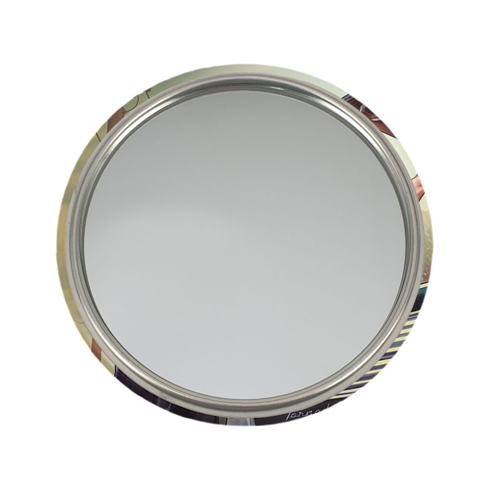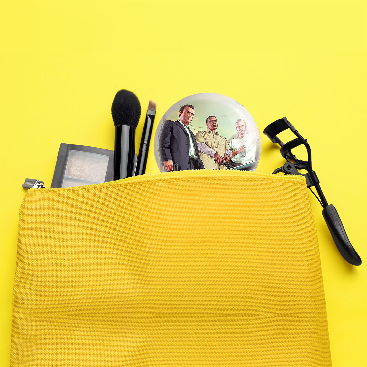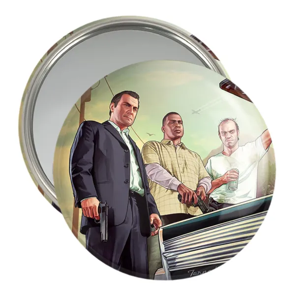 آینه های جیبی مایکل و ترور فرانکلین جی تی ای GTA خندالو دایره ای به قطر 7.5 سانتی متر می باشد که نه خیلی بزرگ و غیر قابل استفاده در کیف آرایشی ست و نه خیلی کوچک که تصویر خاصی در آن مشاهده نشود. سایزی استاندارد و کارآمد دارد و مناسب قرار گیری در کیف لوازم آرایش و کیف های کوچک دستی نیز هست. بدنه ی آینه جیبی مایکل و ترور فرانکلین جی تی ای GTA در قسمتی که آینه را در بر گرفته فلزی بوده و ظاهر براق و بسیار زیبایی دارد. چاپ طرح در پشت آینه بوسیله چاپگرهای دیجیتال شش رنگ با شفافیت و کیفیتی مثال زدنی انجام گرفته و با روکش لمینت حرارتی پوشیده شده که در مقابل آسیب و خط و خش مقاوم بوده و کیفیت بالایی دارد. آینه های جیبی مایکل و ترور فرانکلین جی تی ای GTA خندالو با تنوع طرحی بسیار بالا، سلیقه هر نوع مخاطبی را تامین میکند.
