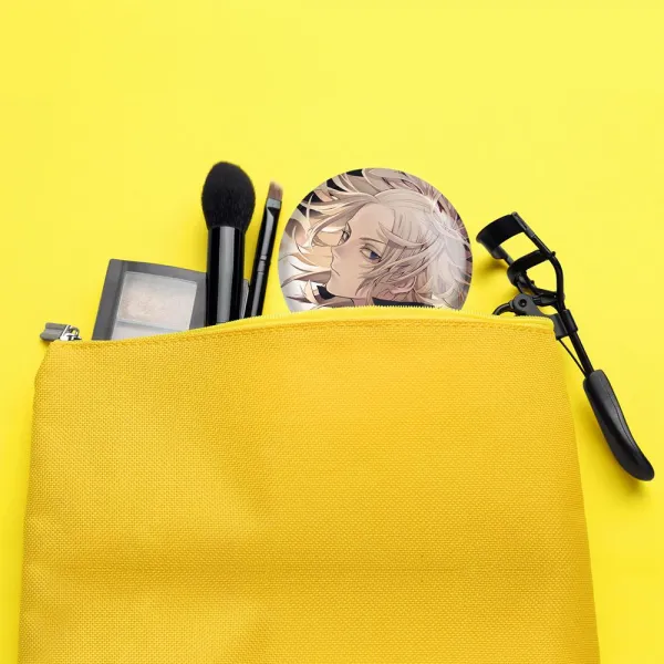 آینه های جیبی مایکی انیمه توکیو ریونجرز خندالو دایره ای به قطر 7.5 سانتی متر می باشد که نه خیلی بزرگ و غیر قابل استفاده در کیف آرایشی ست و نه خیلی کوچک که تصویر خاصی در آن مشاهده نشود. سایزی استاندارد و کارآمد دارد و مناسب قرار گیری در کیف لوازم آرایش و کیف های کوچک دستی نیز هست.
