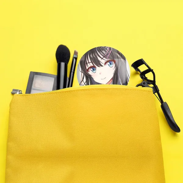 آینه های جیبی مای انیمه بانی گرل سنپای خندالو دایره ای به قطر 7.5 سانتی متر می باشد که نه خیلی بزرگ و غیر قابل استفاده در کیف آرایشی ست و نه خیلی کوچک که تصویر خاصی در آن مشاهده نشود. سایزی استاندارد و کارآمد دارد و مناسب قرار گیری در کیف لوازم آرایش و کیف های کوچک دستی نیز هست.