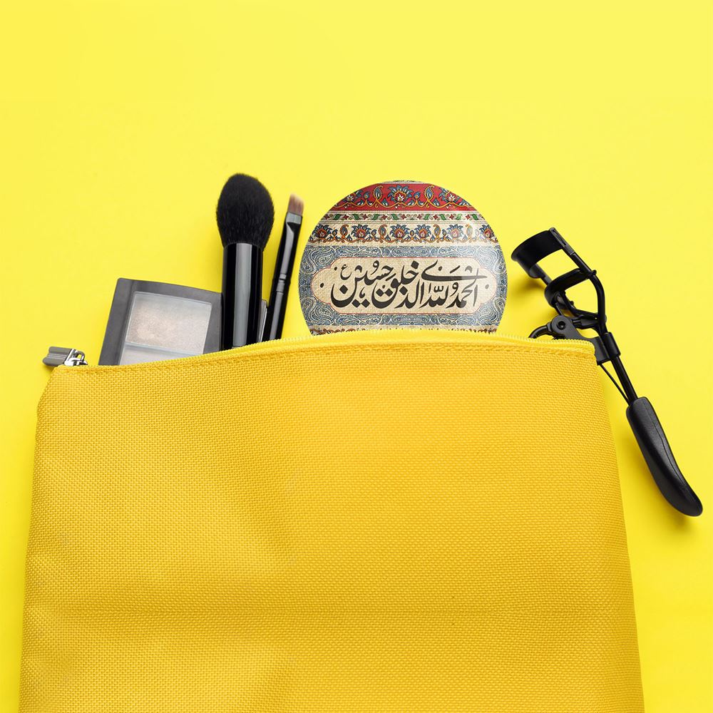 آینه های جیبی محرم الحمد الله الذی خلق حسین خندالو دایره ای به قطر 7.5 سانتی متر می باشد که نه خیلی بزرگ و غیر قابل استفاده در کیف آرایشی ست و نه خیلی کوچک که تصویر خاصی در آن مشاهده نشود. سایزی استاندارد و کارآمد دارد و مناسب قرار گیری در کیف لوازم آرایش و کیف های کوچک دستی نیز هست. بدنه ی آینه جیبی محرم الحمد الله الذی خلق حسین در قسمتی که آینه را در بر گرفته فلزی بوده و ظاهر براق و بسیار زیبایی دارد. چاپ طرح در پشت آینه بوسیله چاپگرهای دیجیتال شش رنگ با شفافیت و کیفیتی مثال زدنی انجام گرفته و با روکش لمینت حرارتی پوشیده شده که در مقابل آسیب و خط و خش مقاوم بوده و کیفیت بالایی دارد. آینه های جیبی محرم الحمد الله الذی خلق حسین خندالو با تنوع طرحی بسیار بالا، سلیقه هر نوع مخاطبی را تامین میکند.