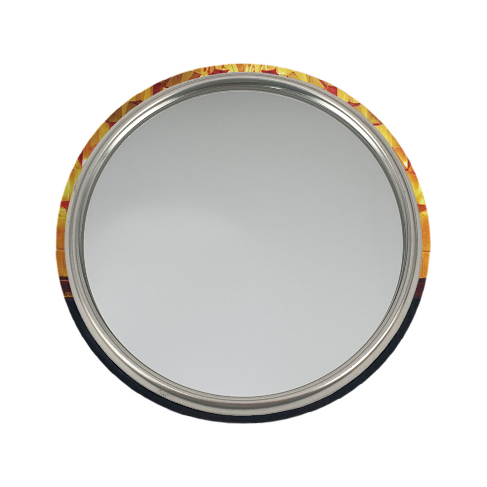 آینه های جیبی محرم السلام علیک یا اباعبدالله الحسین خندالو دایره ای به قطر 7.5 سانتی متر می باشد که نه خیلی بزرگ و غیر قابل استفاده در کیف آرایشی ست و نه خیلی کوچک که تصویر خاصی در آن مشاهده نشود. سایزی استاندارد و کارآمد دارد و مناسب قرار گیری در کیف لوازم آرایش و کیف های کوچک دستی نیز هست.