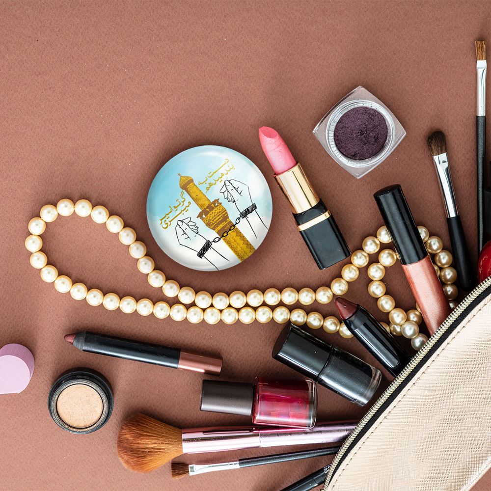 آینه های جیبی محرم دست به بند میدهم گر تو اسیر میبری خندالو دایره ای به قطر 7.5 سانتی متر می باشد که نه خیلی بزرگ و غیر قابل استفاده در کیف آرایشی ست و نه خیلی کوچک که تصویر خاصی در آن مشاهده نشود. سایزی استاندارد و کارآمد دارد و مناسب قرار گیری در کیف لوازم آرایش و کیف های کوچک دستی نیز هست. بدنه ی آینه جیبی محرم دست به بند میدهم گر تو اسیر میبری در قسمتی که آینه را در بر گرفته فلزی بوده و ظاهر براق و بسیار زیبایی دارد. چاپ طرح در پشت آینه بوسیله چاپگرهای دیجیتال شش رنگ با شفافیت و کیفیتی مثال زدنی انجام گرفته و با روکش لمینت حرارتی پوشیده شده که در مقابل آسیب و خط و خش مقاوم بوده و کیفیت بالایی دارد. آینه های جیبی محرم دست به بند میدهم گر تو اسیر میبری خندالو با تنوع طرحی بسیار بالا، سلیقه هر نوع مخاطبی را تامین میکند.