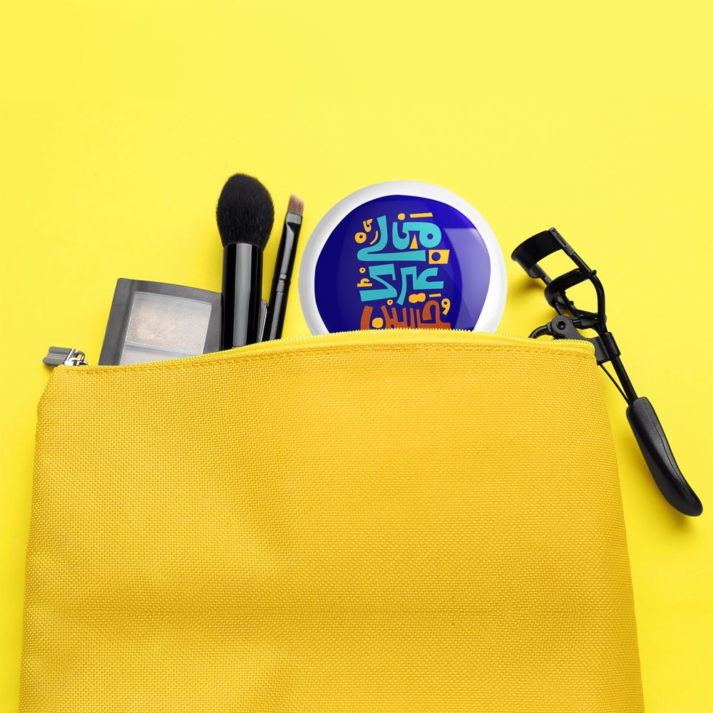 آینه های جیبی محرم من لی غیرک حسین خندالو دایره ای به قطر 7.5 سانتی متر می باشد که نه خیلی بزرگ و غیر قابل استفاده در کیف آرایشی ست و نه خیلی کوچک که تصویر خاصی در آن مشاهده نشود. سایزی استاندارد و کارآمد دارد و مناسب قرار گیری در کیف لوازم آرایش و کیف های کوچک دستی نیز هست. بدنه ی آینه جیبی محرم من لی غیرک حسین در قسمتی که آینه را در بر گرفته فلزی بوده و ظاهر براق و بسیار زیبایی دارد. چاپ طرح در پشت آینه بوسیله چاپگرهای دیجیتال شش رنگ با شفافیت و کیفیتی مثال زدنی انجام گرفته و با روکش لمینت حرارتی پوشیده شده که در مقابل آسیب و خط و خش مقاوم بوده و کیفیت بالایی دارد. آینه های جیبی محرم من لی غیرک حسین خندالو با تنوع طرحی بسیار بالا، سلیقه هر نوع مخاطبی را تامین میکند.