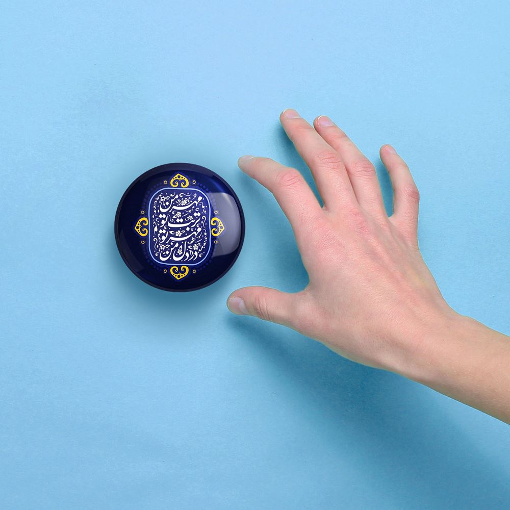 آینه های جیبی محرم مهر من تربت تو مهر تو در دل من خندالو دایره ای به قطر 7.5 سانتی متر می باشد که نه خیلی بزرگ و غیر قابل استفاده در کیف آرایشی ست و نه خیلی کوچک که تصویر خاصی در آن مشاهده نشود. سایزی استاندارد و کارآمد دارد و مناسب قرار گیری در کیف لوازم آرایش و کیف های کوچک دستی نیز هست. بدنه ی آینه جیبی محرم مهر من تربت تو مهر تو در دل من در قسمتی که آینه را در بر گرفته فلزی بوده و ظاهر براق و بسیار زیبایی دارد. چاپ طرح در پشت آینه بوسیله چاپگرهای دیجیتال شش رنگ با شفافیت و کیفیتی مثال زدنی انجام گرفته و با روکش لمینت حرارتی پوشیده شده که در مقابل آسیب و خط و خش مقاوم بوده و کیفیت بالایی دارد. آینه های جیبی محرم مهر من تربت تو مهر تو در دل من خندالو با تنوع طرحی بسیار بالا، سلیقه هر نوع مخاطبی را تامین میکند.