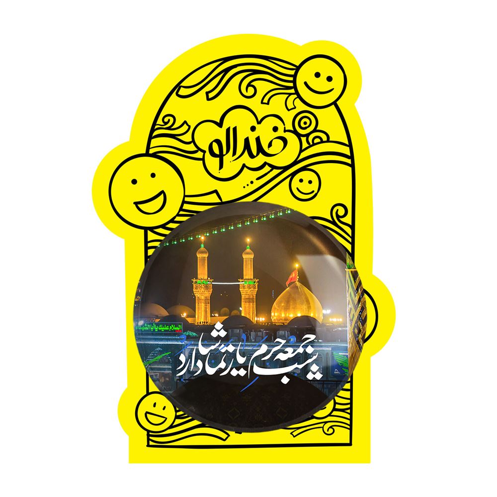 آینه های جیبی محرم کربلا شب جمعه حرم یار تماشا دارد خندالو دایره ای به قطر 7.5 سانتی متر می باشد که نه خیلی بزرگ و غیر قابل استفاده در کیف آرایشی ست و نه خیلی کوچک که تصویر خاصی در آن مشاهده نشود. سایزی استاندارد و کارآمد دارد و مناسب قرار گیری در کیف لوازم آرایش و کیف های کوچک دستی نیز هست. بدنه ی آینه جیبی محرم کربلا شب جمعه حرم یار تماشا دارد در قسمتی که آینه را در بر گرفته فلزی بوده و ظاهر براق و بسیار زیبایی دارد. چاپ طرح در پشت آینه بوسیله چاپگرهای دیجیتال شش رنگ با شفافیت و کیفیتی مثال زدنی انجام گرفته و با روکش لمینت حرارتی پوشیده شده که در مقابل آسیب و خط و خش مقاوم بوده و کیفیت بالایی دارد. آینه های جیبی محرم کربلا شب جمعه حرم یار تماشا دارد خندالو با تنوع طرحی بسیار بالا، سلیقه هر نوع مخاطبی را تامین میکند.