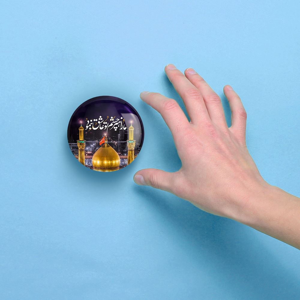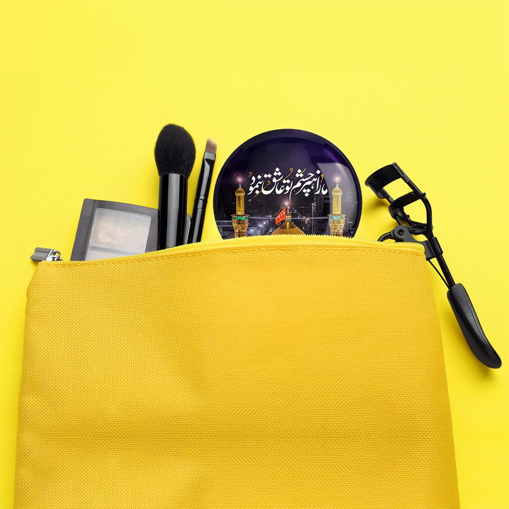 آینه های جیبی محرم کربلا ما را هنر چشم تو عاشق بنمود خندالو دایره ای به قطر 7.5 سانتی متر می باشد که نه خیلی بزرگ و غیر قابل استفاده در کیف آرایشی ست و نه خیلی کوچک که تصویر خاصی در آن مشاهده نشود. سایزی استاندارد و کارآمد دارد و مناسب قرار گیری در کیف لوازم آرایش و کیف های کوچک دستی نیز هست. بدنه ی آینه جیبی محرم کربلا ما را هنر چشم تو عاشق بنمود در قسمتی که آینه را در بر گرفته فلزی بوده و ظاهر براق و بسیار زیبایی دارد. چاپ طرح در پشت آینه بوسیله چاپگرهای دیجیتال شش رنگ با شفافیت و کیفیتی مثال زدنی انجام گرفته و با روکش لمینت حرارتی پوشیده شده که در مقابل آسیب و خط و خش مقاوم بوده و کیفیت بالایی دارد. آینه های جیبی محرم کربلا ما را هنر چشم تو عاشق بنمود خندالو با تنوع طرحی بسیار بالا، سلیقه هر نوع مخاطبی را تامین میکند.