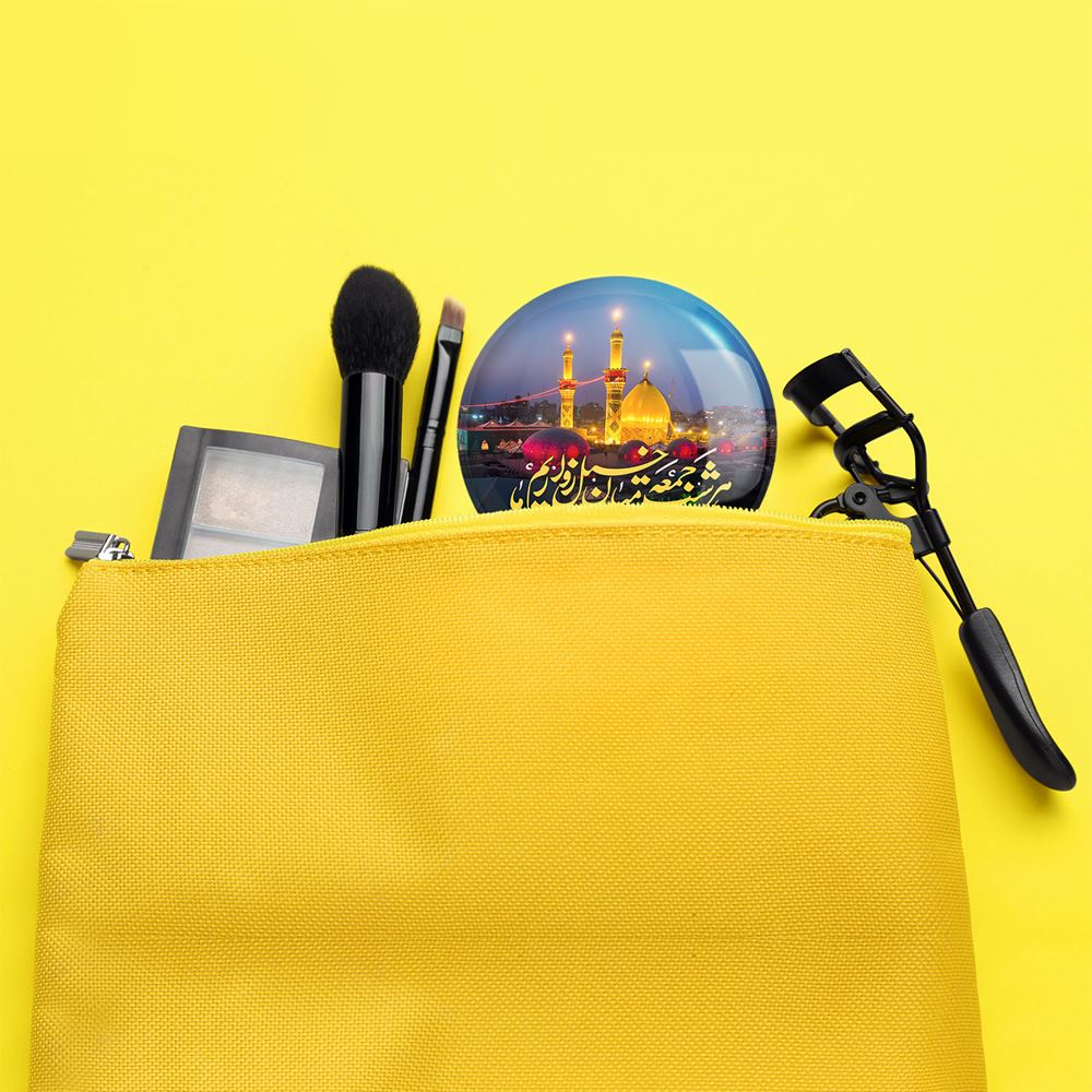 آینه های جیبی محرم کربلا هر شب جمعه میان خیل زواریم ما خندالو دایره ای به قطر 7.5 سانتی متر می باشد که نه خیلی بزرگ و غیر قابل استفاده در کیف آرایشی ست و نه خیلی کوچک که تصویر خاصی در آن مشاهده نشود. سایزی استاندارد و کارآمد دارد و مناسب قرار گیری در کیف لوازم آرایش و کیف های کوچک دستی نیز هست. بدنه ی آینه جیبی محرم کربلا هر شب جمعه میان خیل زواریم ما در قسمتی که آینه را در بر گرفته فلزی بوده و ظاهر براق و بسیار زیبایی دارد. چاپ طرح در پشت آینه بوسیله چاپگرهای دیجیتال شش رنگ با شفافیت و کیفیتی مثال زدنی انجام گرفته و با روکش لمینت حرارتی پوشیده شده که در مقابل آسیب و خط و خش مقاوم بوده و کیفیت بالایی دارد. آینه های جیبی محرم کربلا هر شب جمعه میان خیل زواریم ما خندالو با تنوع طرحی بسیار بالا، سلیقه هر نوع مخاطبی را تامین میکند.