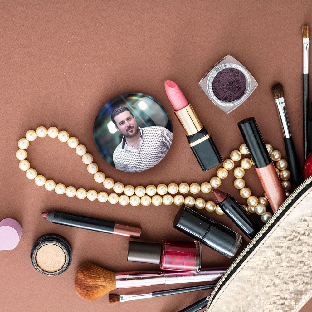 آینه های جیبی محسن کیایی خندالو دایره ای به قطر 7.5 سانتی متر می باشد که نه خیلی بزرگ و غیر قابل استفاده در کیف آرایشی ست و نه خیلی کوچک که تصویر خاصی در آن مشاهده نشود. سایزی استاندارد و کارآمد دارد و مناسب قرار گیری در کیف لوازم آرایش و کیف های کوچک دستی نیز هست. بدنه ی آینه جیبی محسن کیایی در قسمتی که آینه را در بر گرفته فلزی بوده و ظاهر براق و بسیار زیبایی دارد. چاپ طرح در پشت آینه بوسیله چاپگرهای دیجیتال شش رنگ با شفافیت و کیفیتی مثال زدنی انجام گرفته و با روکش لمینت حرارتی پوشیده شده که در مقابل آسیب و خط و خش مقاوم بوده و کیفیت بالایی دارد. آینه های جیبی محسن کیایی خندالو با تنوع طرحی بسیار بالا، سلیقه هر نوع مخاطبی را تامین میکند.