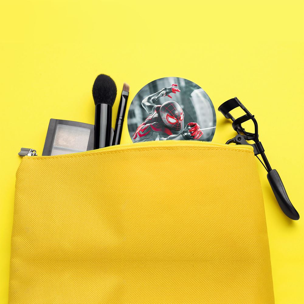 آینه های جیبی مرد عنکبوتی Spider Man خندالو دایره ای به قطر 7.5 سانتی متر می باشد که نه خیلی بزرگ و غیر قابل استفاده در کیف آرایشی ست و نه خیلی کوچک که تصویر خاصی در آن مشاهده نشود. سایزی استاندارد و کارآمد دارد و مناسب قرار گیری در کیف لوازم آرایش و کیف های کوچک دستی نیز هست.