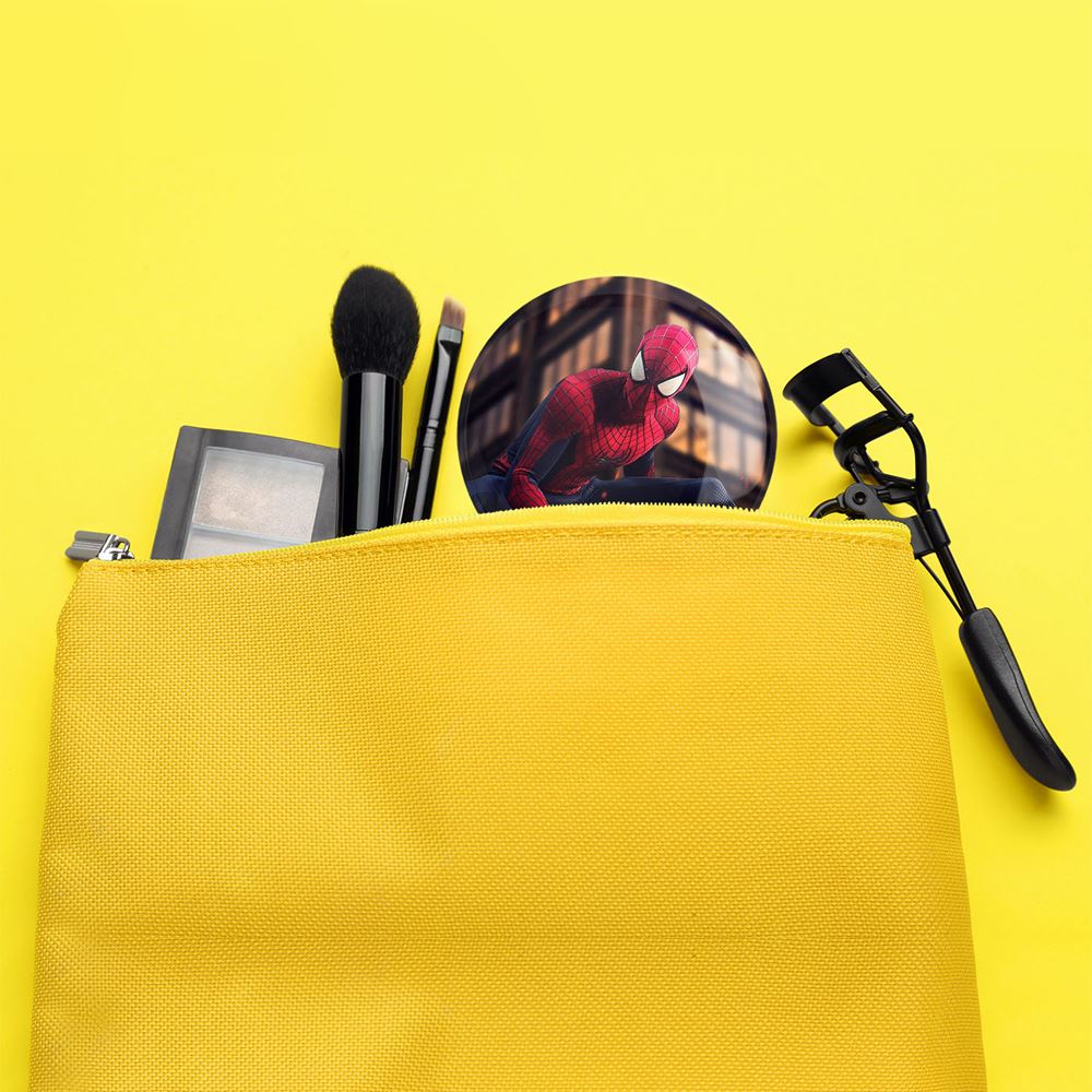 آینه های جیبی مرد عنکبوتی Spider Man خندالو دایره ای به قطر 7.5 سانتی متر می باشد که نه خیلی بزرگ و غیر قابل استفاده در کیف آرایشی ست و نه خیلی کوچک که تصویر خاصی در آن مشاهده نشود. سایزی استاندارد و کارآمد دارد و مناسب قرار گیری در کیف لوازم آرایش و کیف های کوچک دستی نیز هست.