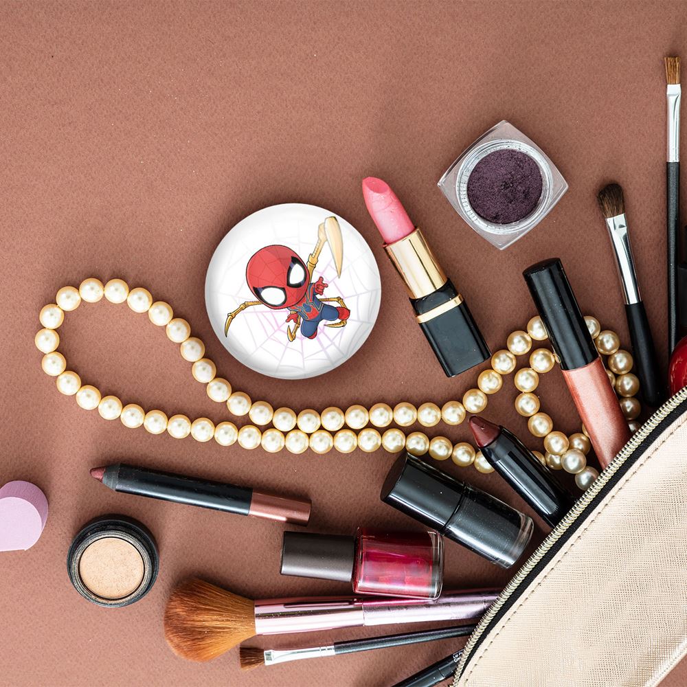 آینه های جیبی مرد عنکبوتی Spider Man خندالو دایره ای به قطر 7.5 سانتی متر می باشد که نه خیلی بزرگ و غیر قابل استفاده در کیف آرایشی ست و نه خیلی کوچک که تصویر خاصی در آن مشاهده نشود. سایزی استاندارد و کارآمد دارد و مناسب قرار گیری در کیف لوازم آرایش و کیف های کوچک دستی نیز هست.