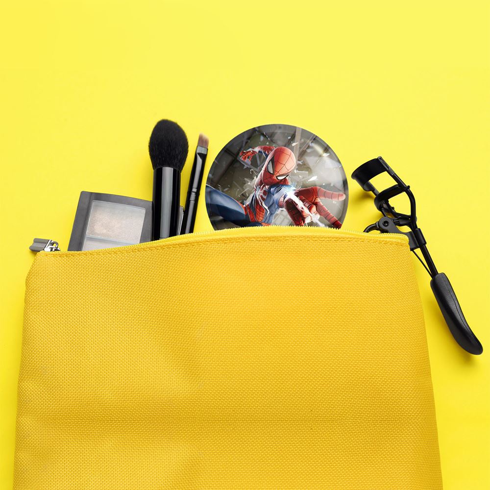 آینه های جیبی مرد عنکبوتی Spider Man خندالو دایره ای به قطر 7.5 سانتی متر می باشد که نه خیلی بزرگ و غیر قابل استفاده در کیف آرایشی ست و نه خیلی کوچک که تصویر خاصی در آن مشاهده نشود. سایزی استاندارد و کارآمد دارد و مناسب قرار گیری در کیف لوازم آرایش و کیف های کوچک دستی نیز هست.