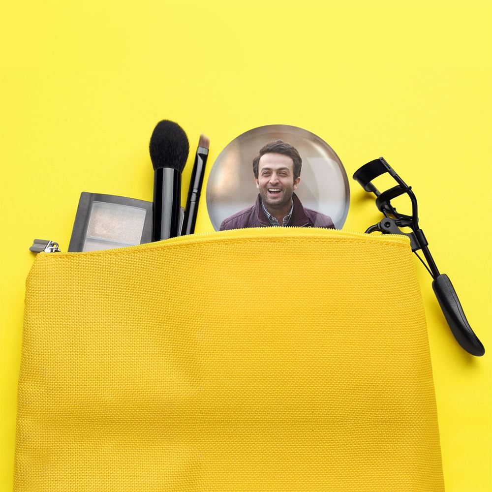 آینه های جیبی مصطفی زمانی خندالو دایره ای به قطر 7.5 سانتی متر می باشد که نه خیلی بزرگ و غیر قابل استفاده در کیف آرایشی ست و نه خیلی کوچک که تصویر خاصی در آن مشاهده نشود. سایزی استاندارد و کارآمد دارد و مناسب قرار گیری در کیف لوازم آرایش و کیف های کوچک دستی نیز هست.