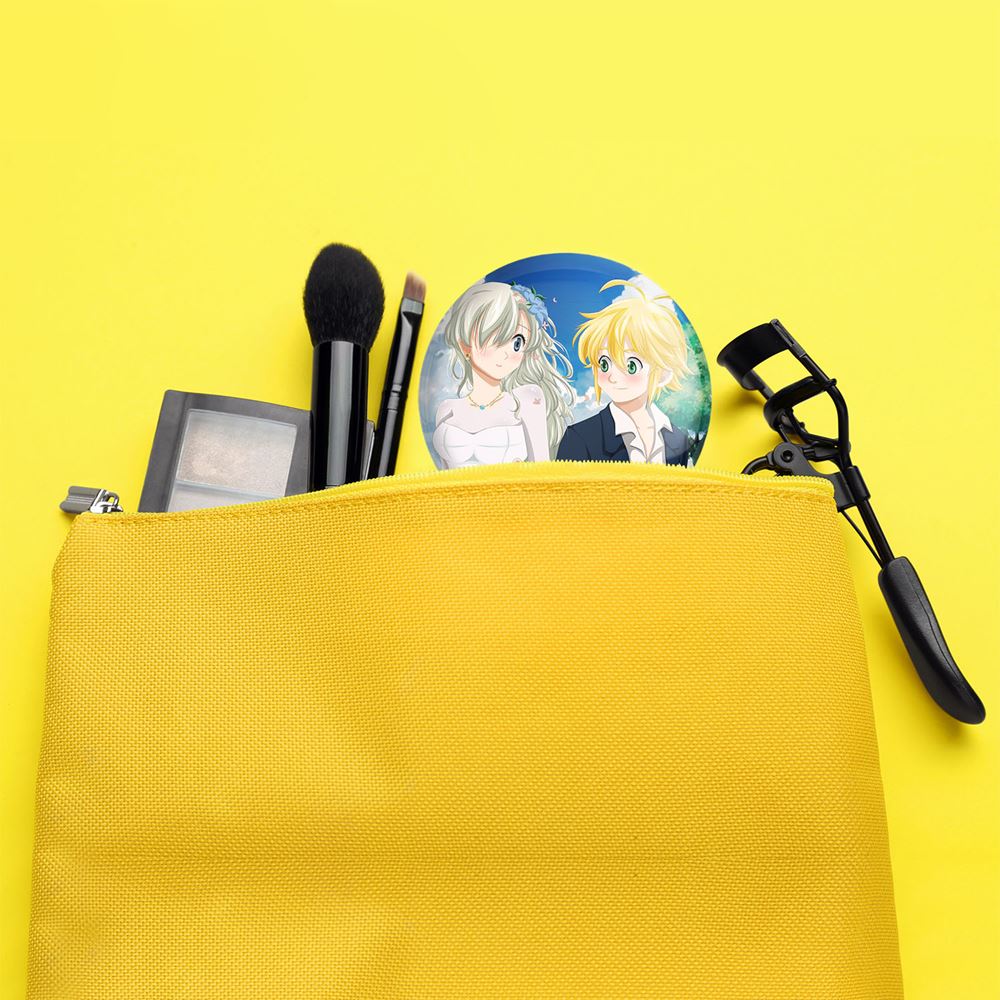 آینه های جیبی ملیوداس و الیزابت انیمه هفت گناه کبیره خندالو دایره ای به قطر 7.5 سانتی متر می باشد که نه خیلی بزرگ و غیر قابل استفاده در کیف آرایشی ست و نه خیلی کوچک که تصویر خاصی در آن مشاهده نشود. سایزی استاندارد و کارآمد دارد و مناسب قرار گیری در کیف لوازم آرایش و کیف های کوچک دستی نیز هست. بدنه ی آینه جیبی ملیوداس و الیزابت انیمه هفت گناه کبیره در قسمتی که آینه را در بر گرفته فلزی بوده و ظاهر براق و بسیار زیبایی دارد. چاپ طرح در پشت آینه بوسیله چاپگرهای دیجیتال شش رنگ با شفافیت و کیفیتی مثال زدنی انجام گرفته و با روکش لمینت حرارتی پوشیده شده که در مقابل آسیب و خط و خش مقاوم بوده و کیفیت بالایی دارد. آینه های جیبی ملیوداس و الیزابت انیمه هفت گناه کبیره خندالو با تنوع طرحی بسیار بالا، سلیقه هر نوع مخاطبی را تامین میکند.