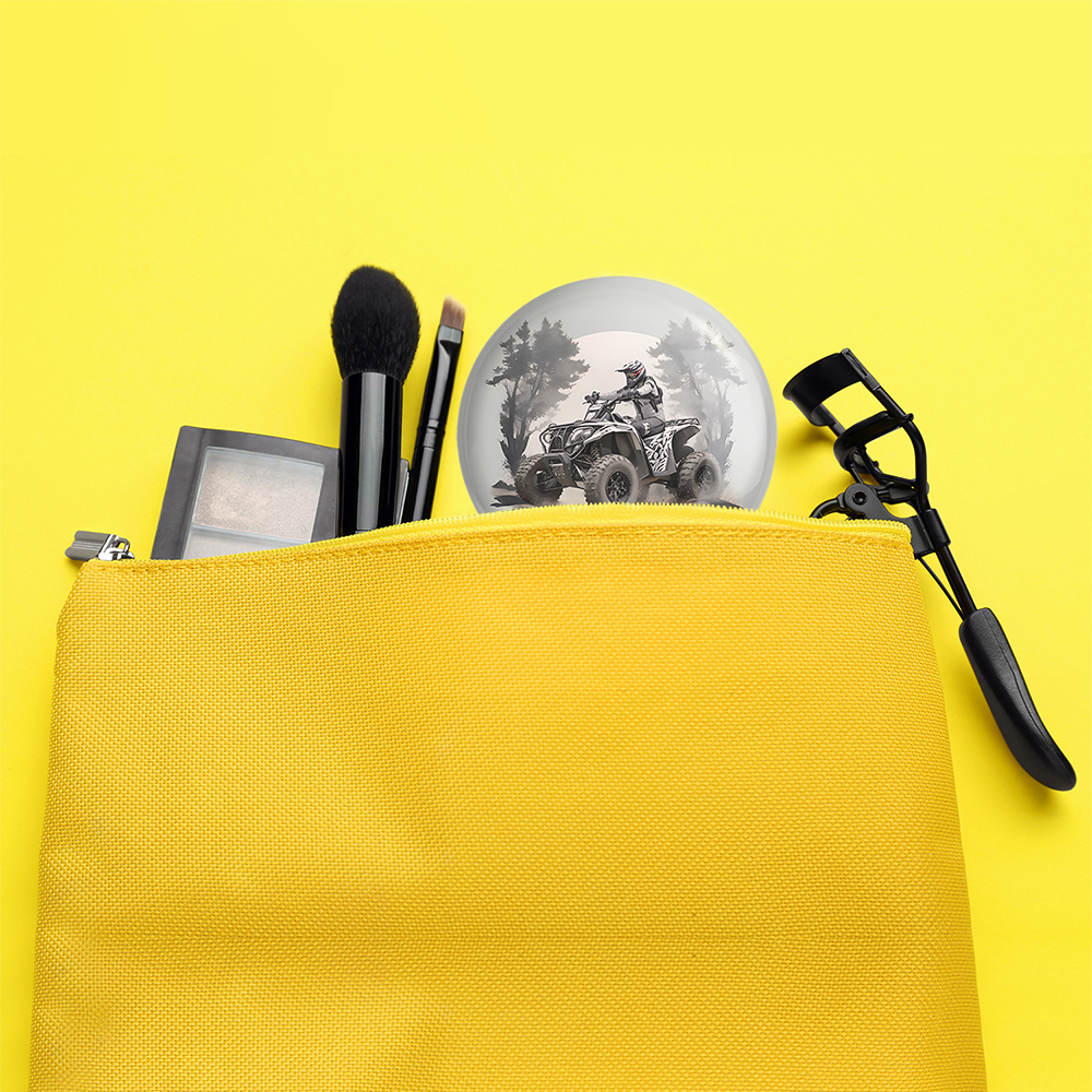 آینه های جیبی موتور چهار چرخ خندالو دایره ای به قطر 7.5 سانتی متر می باشد که نه خیلی بزرگ و غیر قابل استفاده در کیف آرایشی ست و نه خیلی کوچک که تصویر خاصی در آن مشاهده نشود. سایزی استاندارد و کارآمد دارد و مناسب قرار گیری در کیف لوازم آرایش و کیف های کوچک دستی نیز هست.
