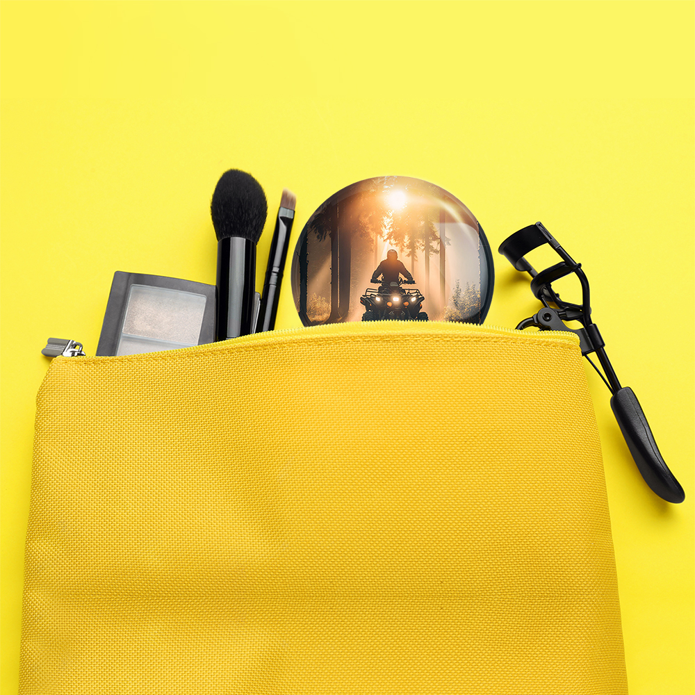 آینه های جیبی موتور چهار چرخ خندالو دایره ای به قطر 7.5 سانتی متر می باشد که نه خیلی بزرگ و غیر قابل استفاده در کیف آرایشی ست و نه خیلی کوچک که تصویر خاصی در آن مشاهده نشود. سایزی استاندارد و کارآمد دارد و مناسب قرار گیری در کیف لوازم آرایش و کیف های کوچک دستی نیز هست.