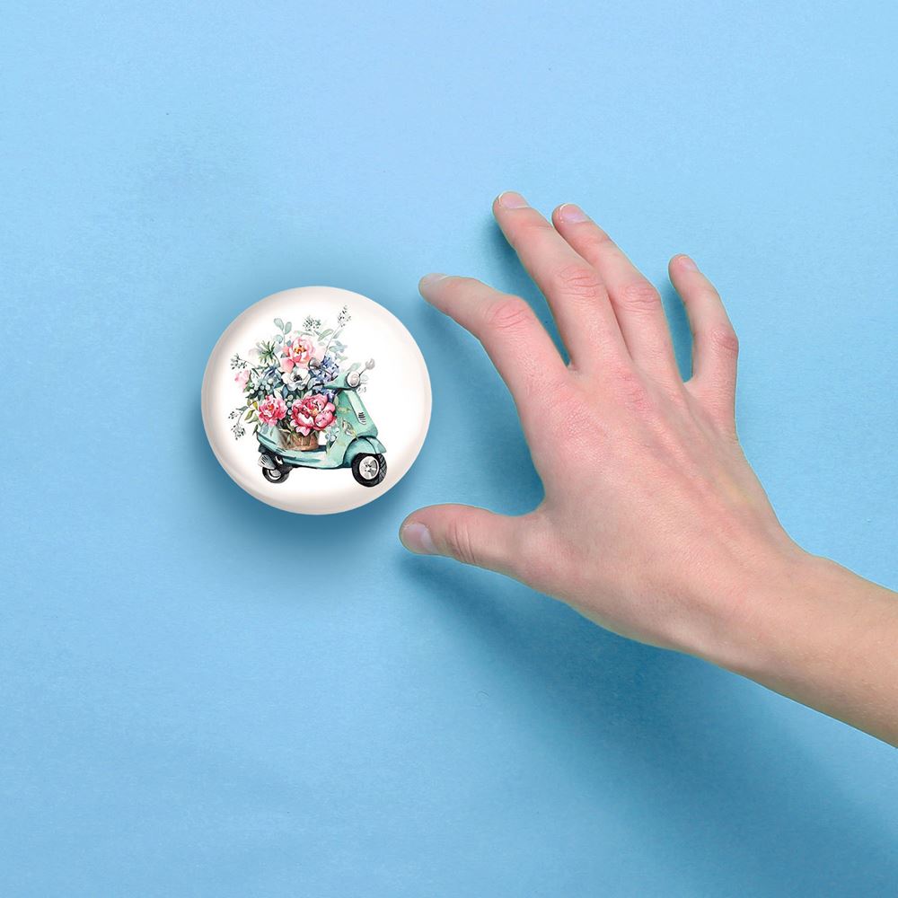 آینه های جیبی موتور گل فروش خندالو دایره ای به قطر 7.5 سانتی متر می باشد که نه خیلی بزرگ و غیر قابل استفاده در کیف آرایشی ست و نه خیلی کوچک که تصویر خاصی در آن مشاهده نشود. سایزی استاندارد و کارآمد دارد و مناسب قرار گیری در کیف لوازم آرایش و کیف های کوچک دستی نیز هست. بدنه ی آینه جیبی موتور گل فروش در قسمتی که آینه را در بر گرفته فلزی بوده و ظاهر براق و بسیار زیبایی دارد. چاپ طرح در پشت آینه بوسیله چاپگرهای دیجیتال شش رنگ با شفافیت و کیفیتی مثال زدنی انجام گرفته و با روکش لمینت حرارتی پوشیده شده که در مقابل آسیب و خط و خش مقاوم بوده و کیفیت بالایی دارد. آینه های جیبی موتور گل فروش خندالو با تنوع طرحی بسیار بالا، سلیقه هر نوع مخاطبی را تامین میکند.