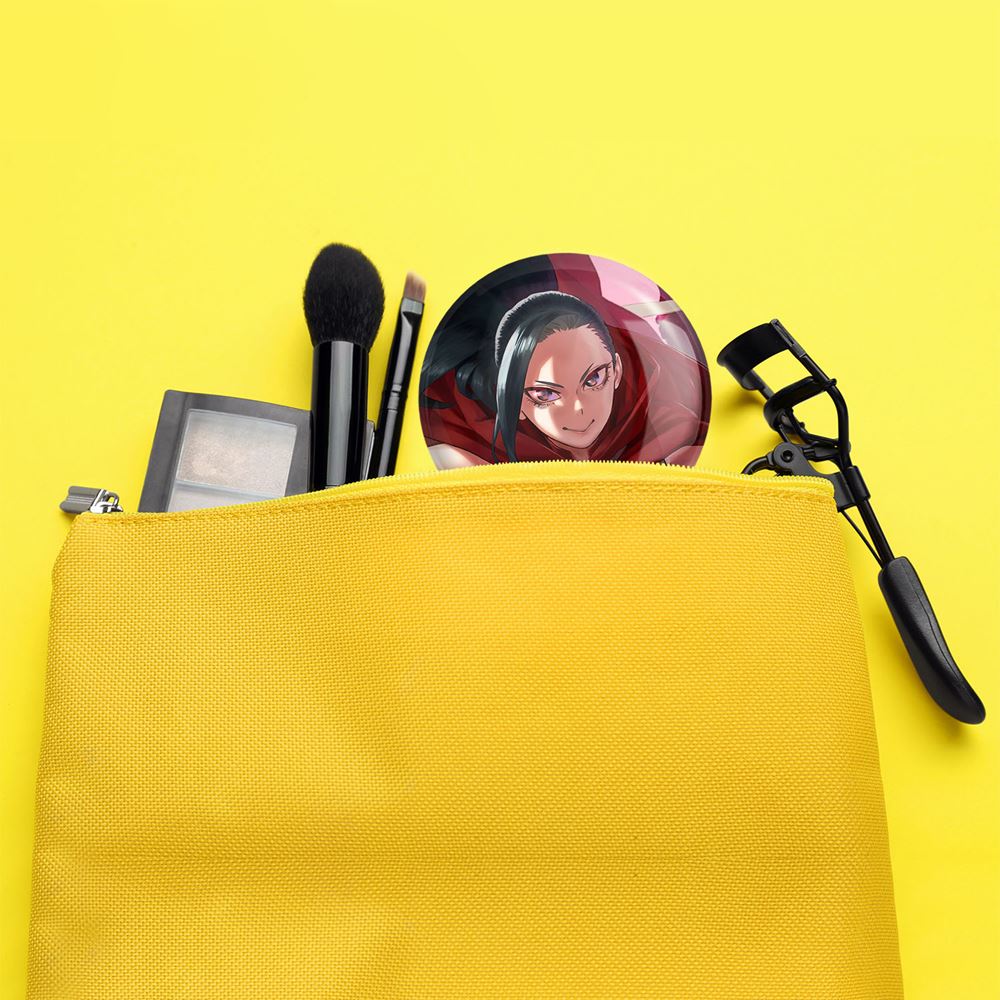 آینه های جیبی مومو چان انیمه آکادمی قهرمان من خندالو دایره ای به قطر 7.5 سانتی متر می باشد که نه خیلی بزرگ و غیر قابل استفاده در کیف آرایشی ست و نه خیلی کوچک که تصویر خاصی در آن مشاهده نشود. سایزی استاندارد و کارآمد دارد و مناسب قرار گیری در کیف لوازم آرایش و کیف های کوچک دستی نیز هست. بدنه ی آینه جیبی مومو چان انیمه آکادمی قهرمان من در قسمتی که آینه را در بر گرفته فلزی بوده و ظاهر براق و بسیار زیبایی دارد. چاپ طرح در پشت آینه بوسیله چاپگرهای دیجیتال شش رنگ با شفافیت و کیفیتی مثال زدنی انجام گرفته و با روکش لمینت حرارتی پوشیده شده که در مقابل آسیب و خط و خش مقاوم بوده و کیفیت بالایی دارد. آینه های جیبی مومو چان انیمه آکادمی قهرمان من خندالو با تنوع طرحی بسیار بالا، سلیقه هر نوع مخاطبی را تامین میکند.