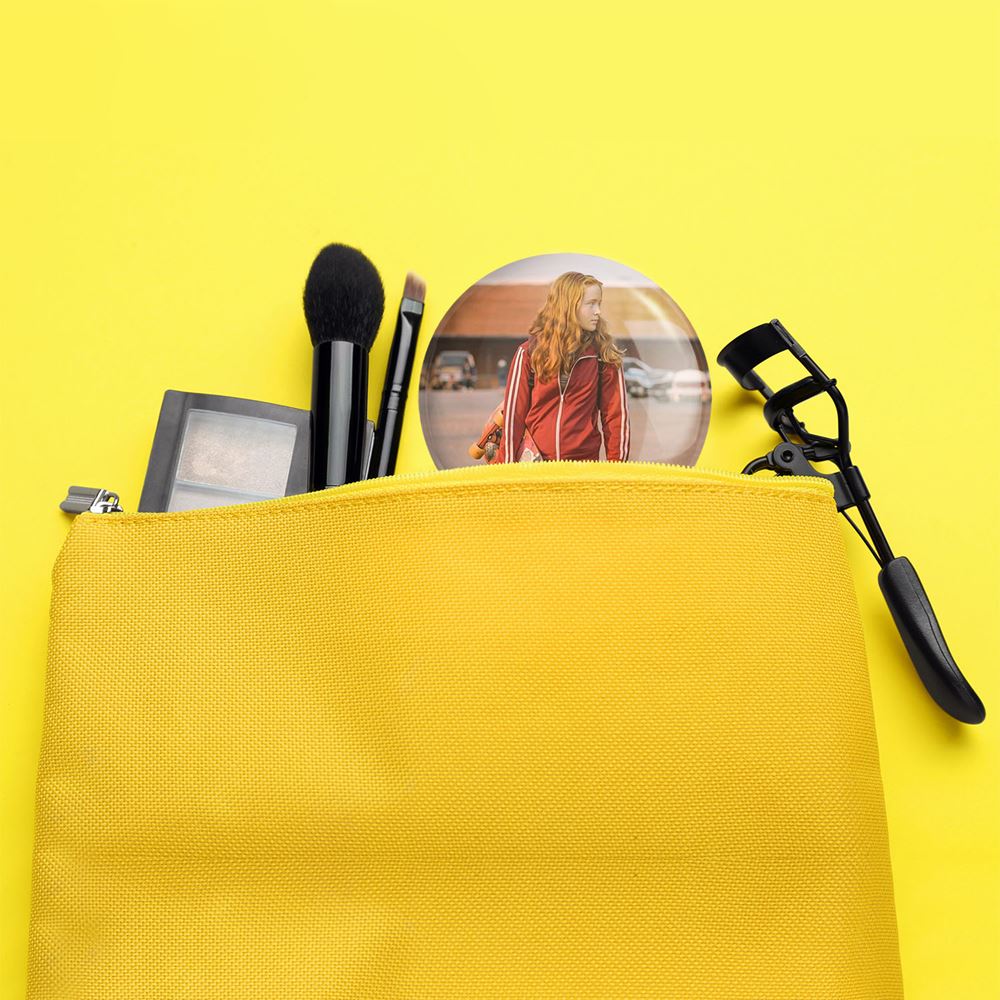 آینه های جیبی مکس سریال استرنجر تینگز Stranger Things خندالو دایره ای به قطر 7.5 سانتی متر می باشد که نه خیلی بزرگ و غیر قابل استفاده در کیف آرایشی ست و نه خیلی کوچک که تصویر خاصی در آن مشاهده نشود. سایزی استاندارد و کارآمد دارد و مناسب قرار گیری در کیف لوازم آرایش و کیف های کوچک دستی نیز هست. بدنه ی آینه جیبی مکس سریال استرنجر تینگز Stranger Things در قسمتی که آینه را در بر گرفته فلزی بوده و ظاهر براق و بسیار زیبایی دارد. چاپ طرح در پشت آینه بوسیله چاپگرهای دیجیتال شش رنگ با شفافیت و کیفیتی مثال زدنی انجام گرفته و با روکش لمینت حرارتی پوشیده شده که در مقابل آسیب و خط و خش مقاوم بوده و کیفیت بالایی دارد. آینه های جیبی مکس سریال استرنجر تینگز Stranger Things خندالو با تنوع طرحی بسیار بالا، سلیقه هر نوع مخاطبی را تامین میکند.