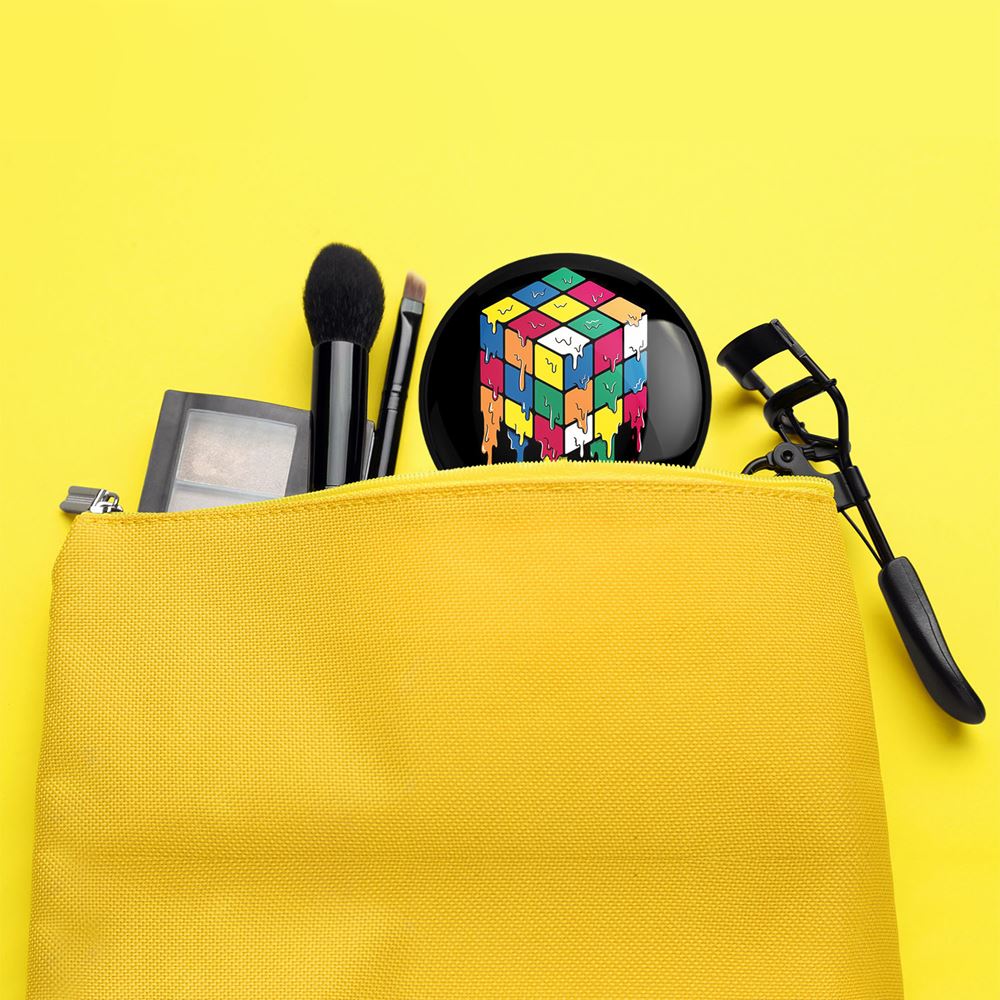 آینه های جیبی مکعب روبیک خندالو دایره ای به قطر 7.5 سانتی متر می باشد که نه خیلی بزرگ و غیر قابل استفاده در کیف آرایشی ست و نه خیلی کوچک که تصویر خاصی در آن مشاهده نشود. سایزی استاندارد و کارآمد دارد و مناسب قرار گیری در کیف لوازم آرایش و کیف های کوچک دستی نیز هست.