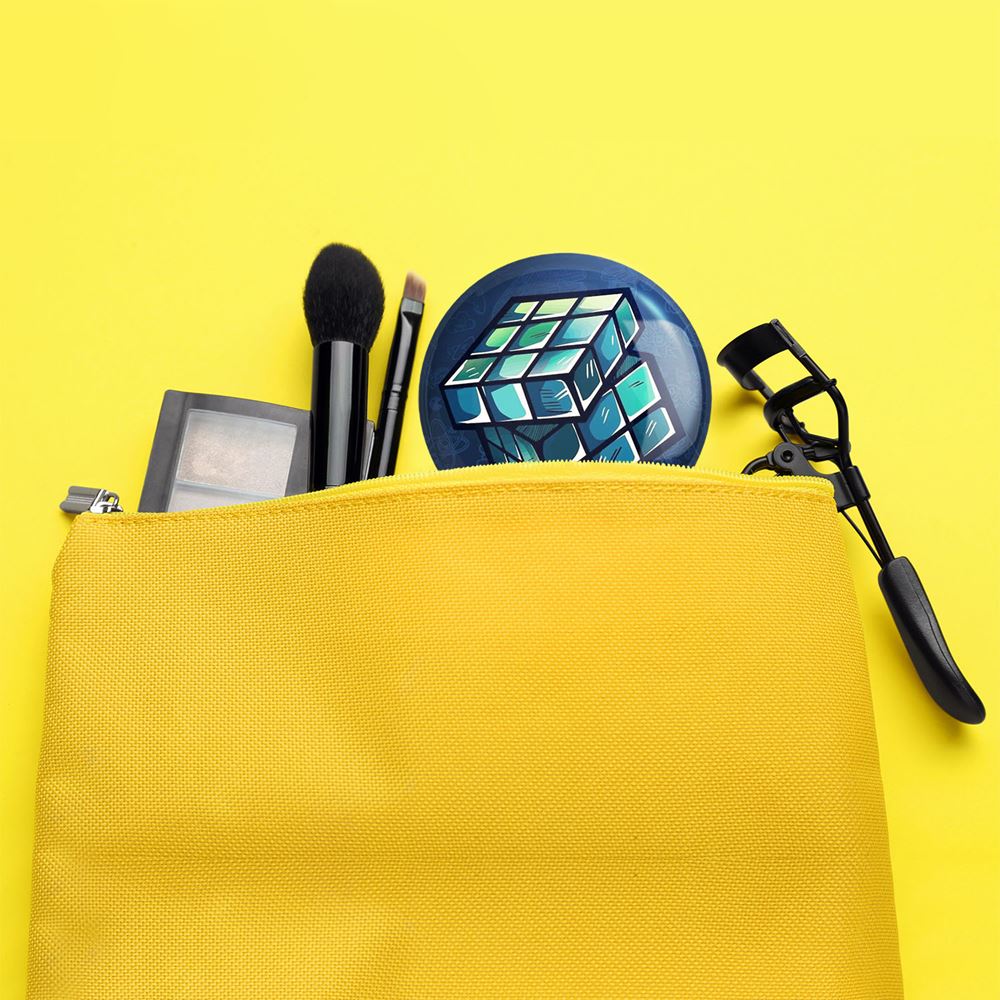 آینه های جیبی مکعب روبیک خندالو دایره ای به قطر 7.5 سانتی متر می باشد که نه خیلی بزرگ و غیر قابل استفاده در کیف آرایشی ست و نه خیلی کوچک که تصویر خاصی در آن مشاهده نشود. سایزی استاندارد و کارآمد دارد و مناسب قرار گیری در کیف لوازم آرایش و کیف های کوچک دستی نیز هست.