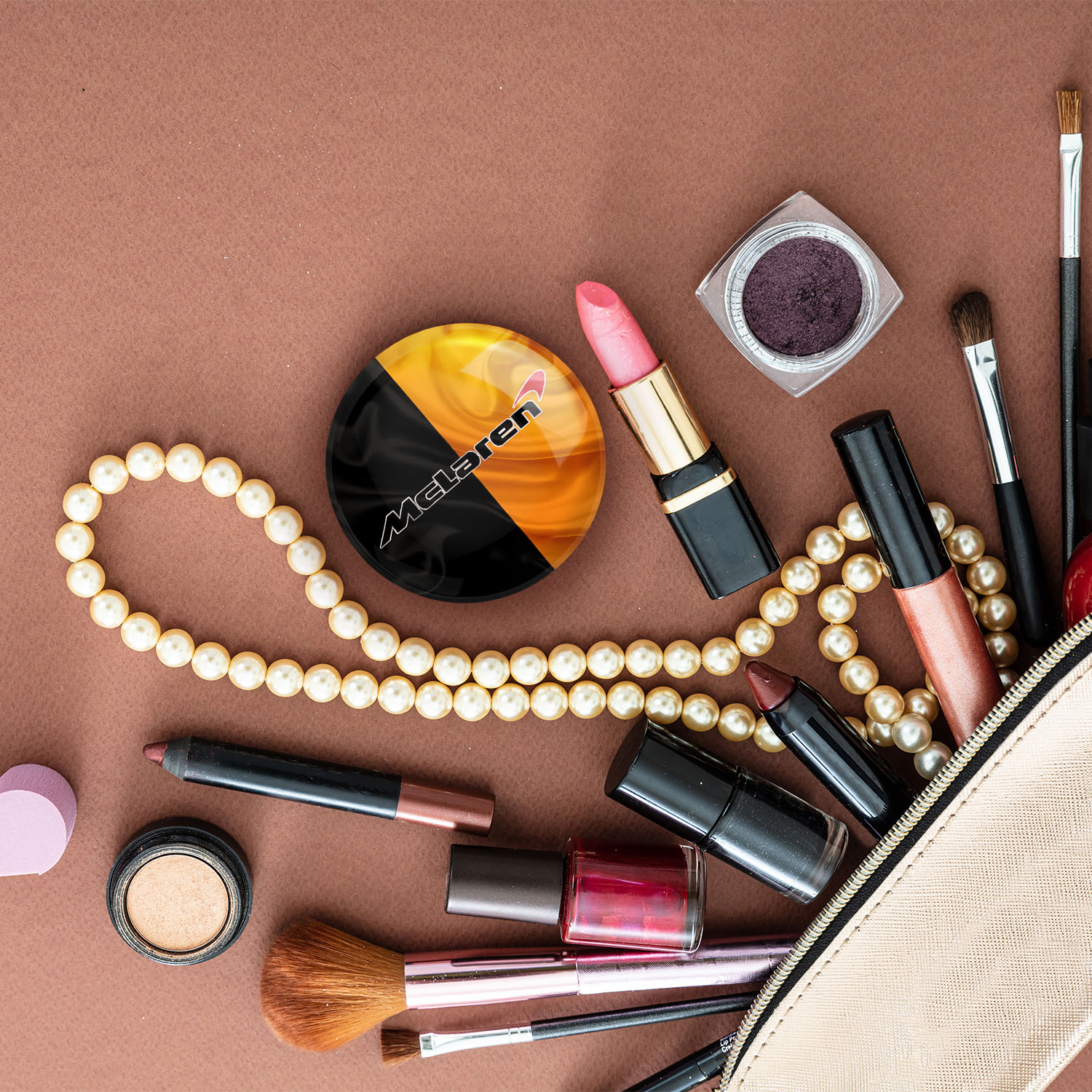 آینه های جیبی مک لارن Mclaren خندالو دایره ای به قطر 7.5 سانتی متر می باشد که نه خیلی بزرگ و غیر قابل استفاده در کیف آرایشی ست و نه خیلی کوچک که تصویر خاصی در آن مشاهده نشود. سایزی استاندارد و کارآمد دارد و مناسب قرار گیری در کیف لوازم آرایش و کیف های کوچک دستی نیز هست.