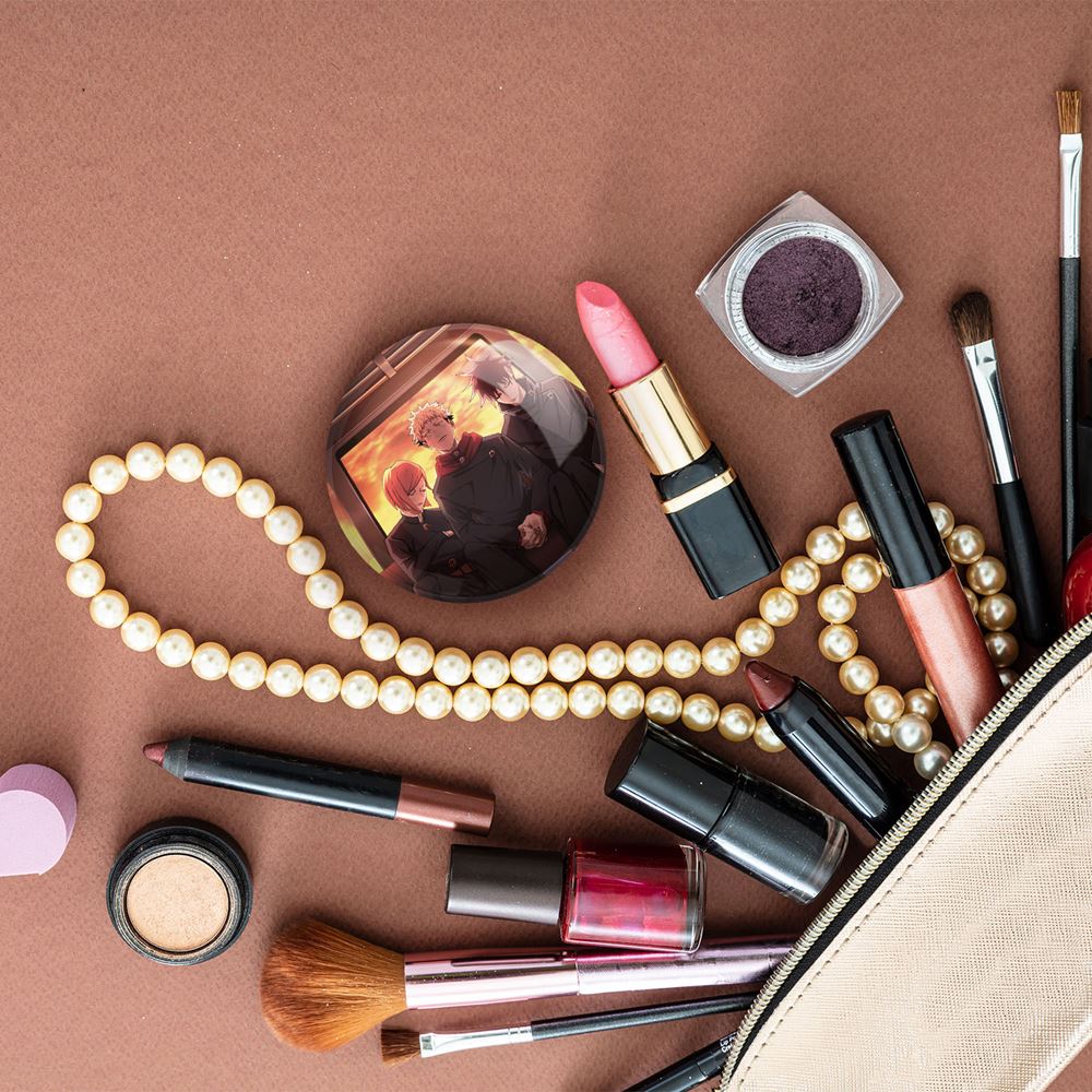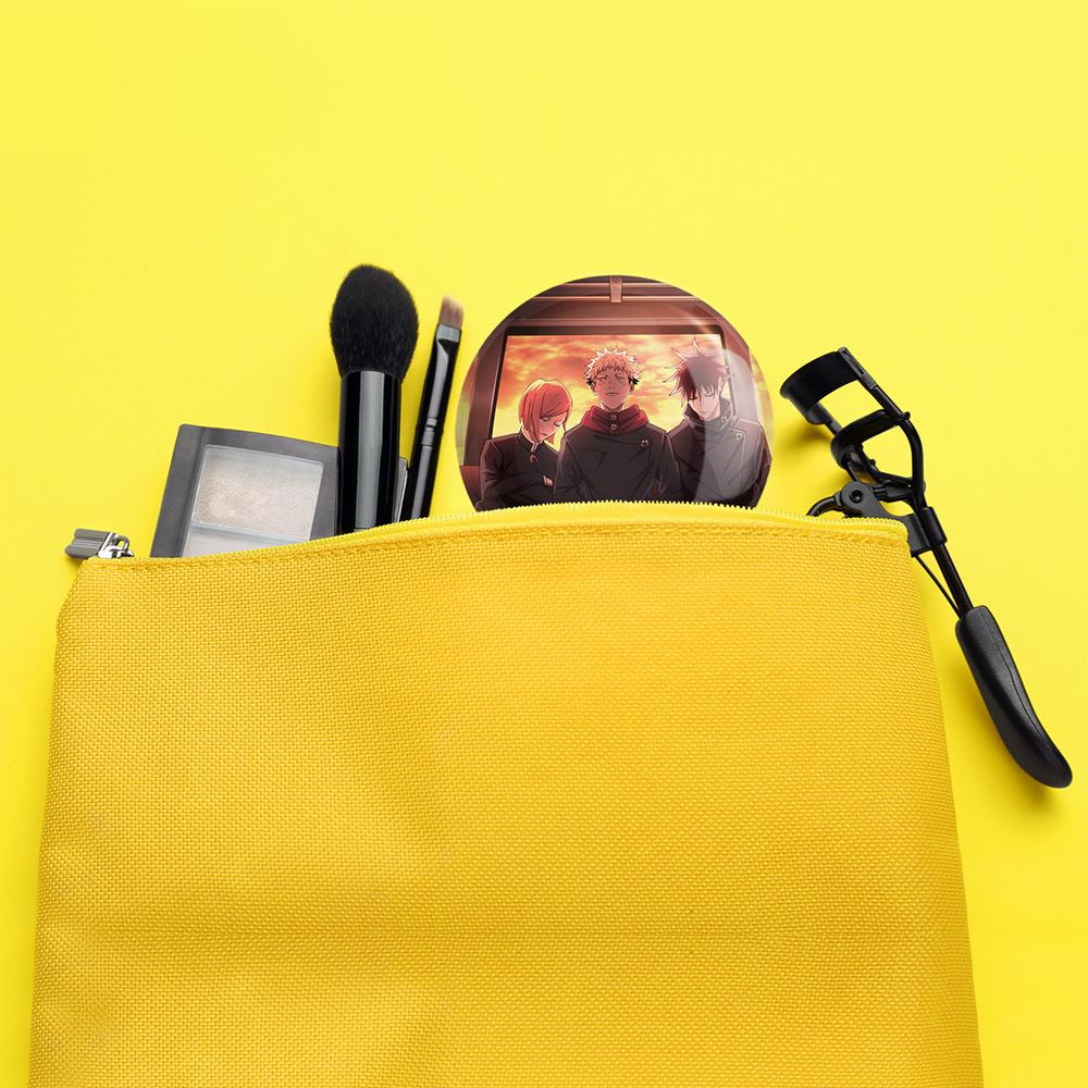 آینه های جیبی مگومی و ایتادوری و نوبارا انیمه جوجوتسو کایزن خندالو دایره ای به قطر 7.5 سانتی متر می باشد که نه خیلی بزرگ و غیر قابل استفاده در کیف آرایشی ست و نه خیلی کوچک که تصویر خاصی در آن مشاهده نشود. سایزی استاندارد و کارآمد دارد و مناسب قرار گیری در کیف لوازم آرایش و کیف های کوچک دستی نیز هست.