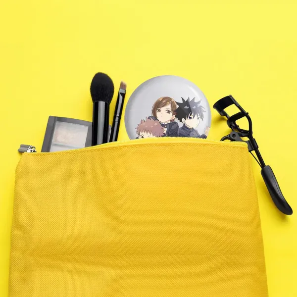 آینه های جیبی مگومی و نوبارا و ایتادوری انیمه جوجوتسو کایزن خندالو دایره ای به قطر 7.5 سانتی متر می باشد که نه خیلی بزرگ و غیر قابل استفاده در کیف آرایشی ست و نه خیلی کوچک که تصویر خاصی در آن مشاهده نشود. سایزی استاندارد و کارآمد دارد و مناسب قرار گیری در کیف لوازم آرایش و کیف های کوچک دستی نیز هست. بدنه ی آینه جیبی مگومی و نوبارا و ایتادوری انیمه جوجوتسو کایزن در قسمتی که آینه را در بر گرفته فلزی بوده و ظاهر براق و بسیار زیبایی دارد. چاپ طرح در پشت آینه بوسیله چاپگرهای دیجیتال شش رنگ با شفافیت و کیفیتی مثال زدنی انجام گرفته و با روکش لمینت حرارتی پوشیده شده که در مقابل آسیب و خط و خش مقاوم بوده و کیفیت بالایی دارد. آینه های جیبی مگومی و نوبارا و ایتادوری انیمه جوجوتسو کایزن خندالو با تنوع طرحی بسیار بالا، سلیقه هر نوع مخاطبی را تامین میکند.