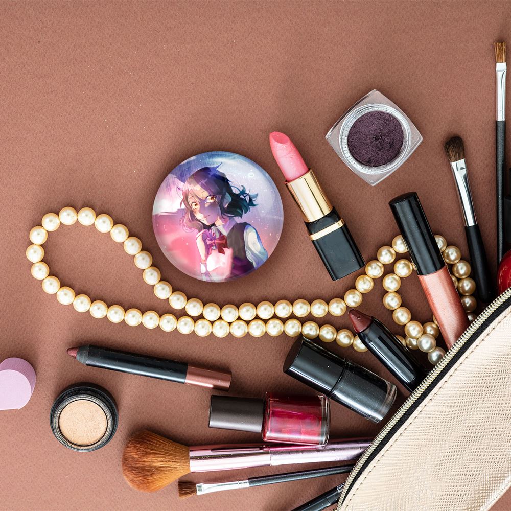 آینه های جیبی میتسویا میامیزو انیمه یورنیم Your Name خندالو دایره ای به قطر 7.5 سانتی متر می باشد که نه خیلی بزرگ و غیر قابل استفاده در کیف آرایشی ست و نه خیلی کوچک که تصویر خاصی در آن مشاهده نشود. سایزی استاندارد و کارآمد دارد و مناسب قرار گیری در کیف لوازم آرایش و کیف های کوچک دستی نیز هست.