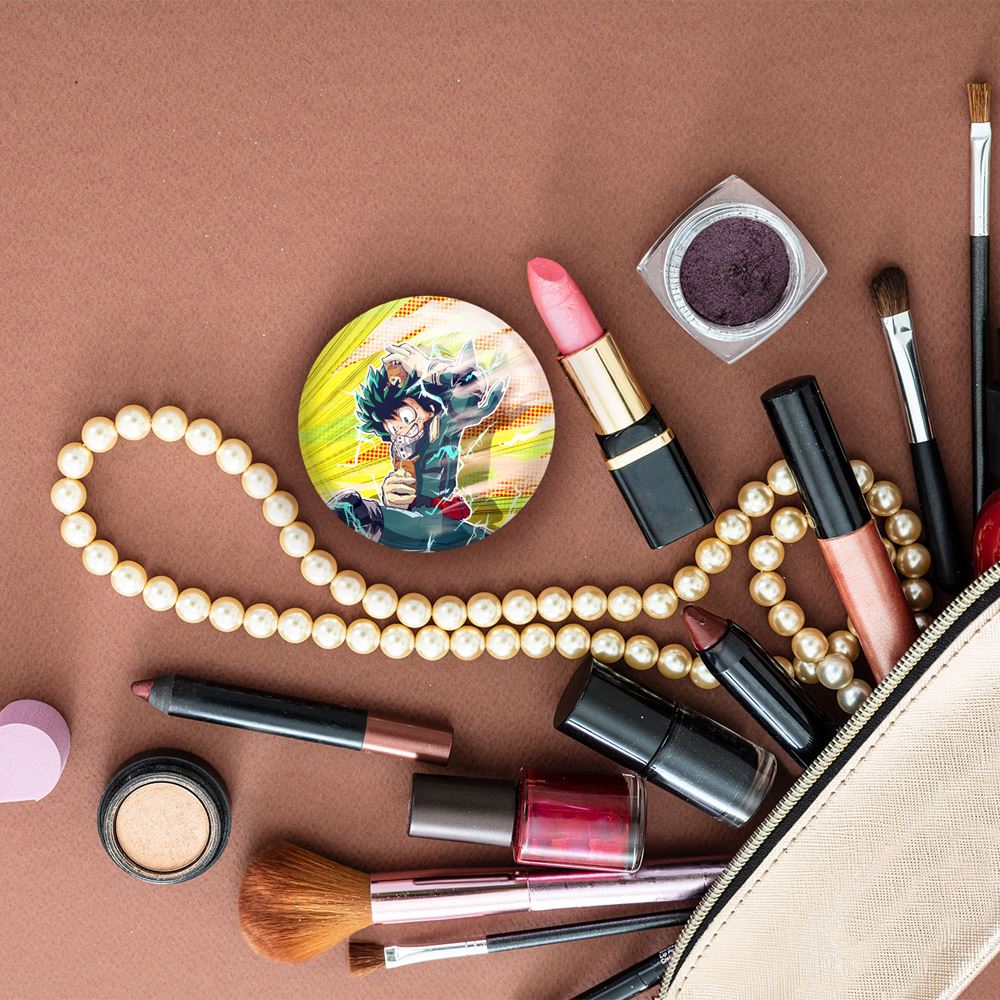 آینه های جیبی میدوریا ایزوکو انیمه آکادمی قهرمان من خندالو دایره ای به قطر 7.5 سانتی متر می باشد که نه خیلی بزرگ و غیر قابل استفاده در کیف آرایشی ست و نه خیلی کوچک که تصویر خاصی در آن مشاهده نشود. سایزی استاندارد و کارآمد دارد و مناسب قرار گیری در کیف لوازم آرایش و کیف های کوچک دستی نیز هست.