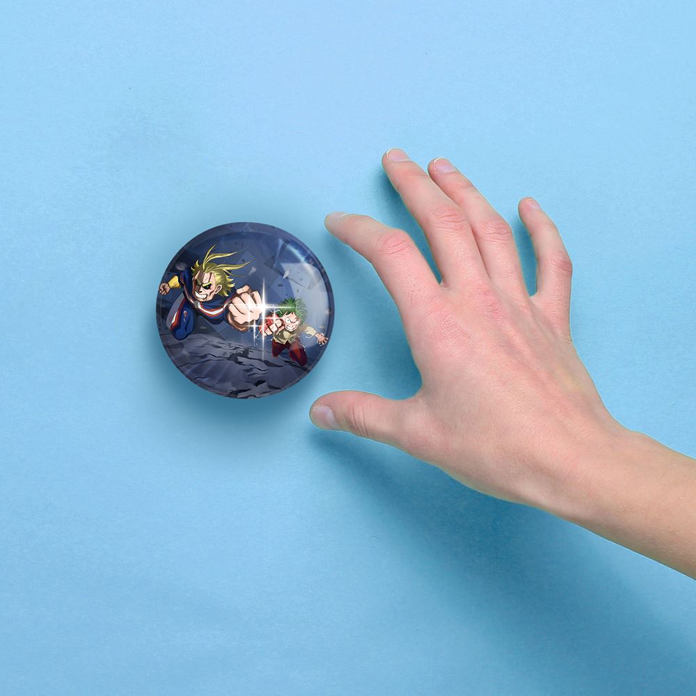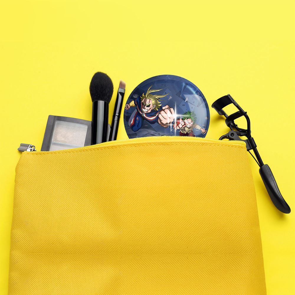 آینه های جیبی میدوریا و آلمایت انیمه آکادمی قهرمان من خندالو دایره ای به قطر 7.5 سانتی متر می باشد که نه خیلی بزرگ و غیر قابل استفاده در کیف آرایشی ست و نه خیلی کوچک که تصویر خاصی در آن مشاهده نشود. سایزی استاندارد و کارآمد دارد و مناسب قرار گیری در کیف لوازم آرایش و کیف های کوچک دستی نیز هست.