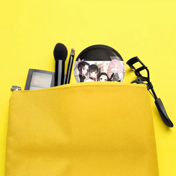 آینه های جیبی میستوری و نزوکو و میسوری و شینوبو انیمه شیطان کش خندالو دایره ای به قطر 7.5 سانتی متر می باشد که نه خیلی بزرگ و غیر قابل استفاده در کیف آرایشی ست و نه خیلی کوچک که تصویر خاصی در آن مشاهده نشود. سایزی استاندارد و کارآمد دارد و مناسب قرار گیری در کیف لوازم آرایش و کیف های کوچک دستی نیز هست. بدنه ی آینه جیبی میستوری و نزوکو و میسوری و شینوبو انیمه شیطان کش در قسمتی که آینه را در بر گرفته فلزی بوده و ظاهر براق و بسیار زیبایی دارد. چاپ طرح در پشت آینه بوسیله چاپگرهای دیجیتال شش رنگ با شفافیت و کیفیتی مثال زدنی انجام گرفته و با روکش لمینت حرارتی پوشیده شده که در مقابل آسیب و خط و خش مقاوم بوده و کیفیت بالایی دارد. آینه های جیبی میستوری و نزوکو و میسوری و شینوبو انیمه شیطان کش خندالو با تنوع طرحی بسیار بالا، سلیقه هر نوع مخاطبی را تامین میکند.